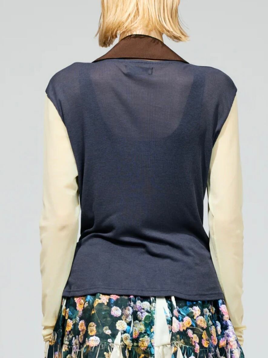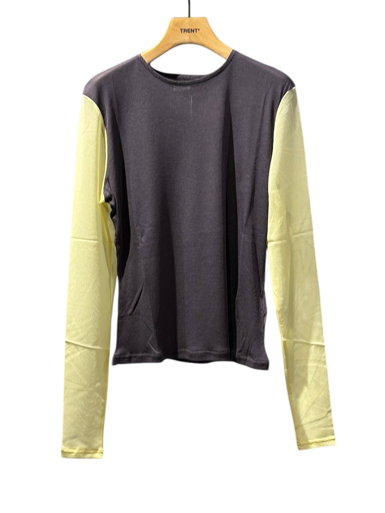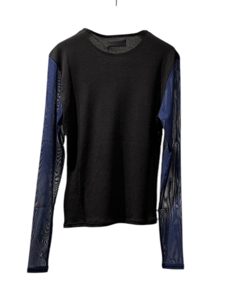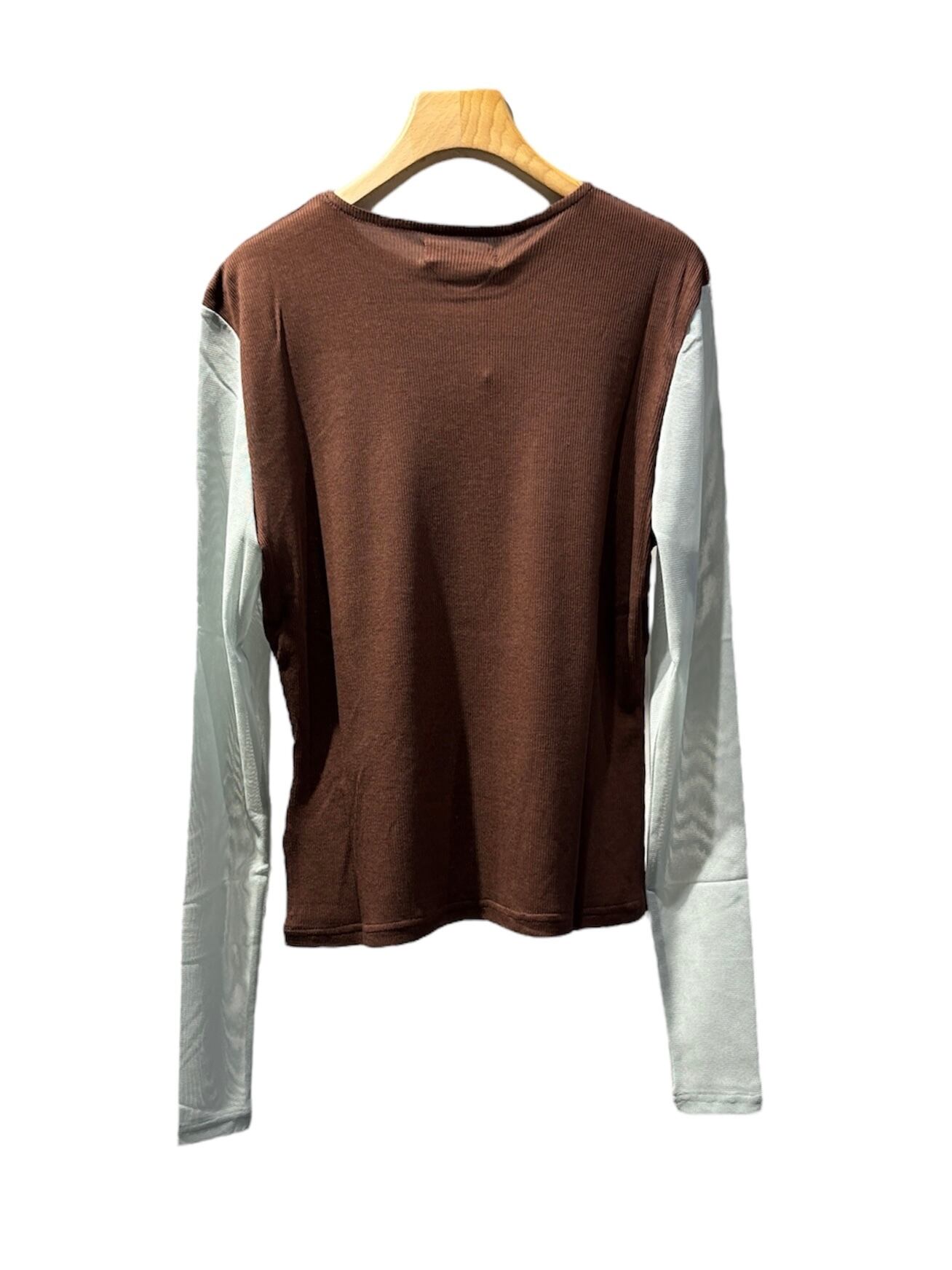 袖と見ごろがバイカラーになったシアー袖のカットソー。