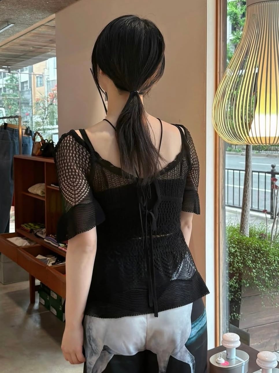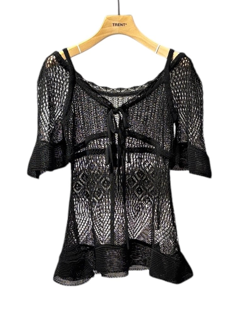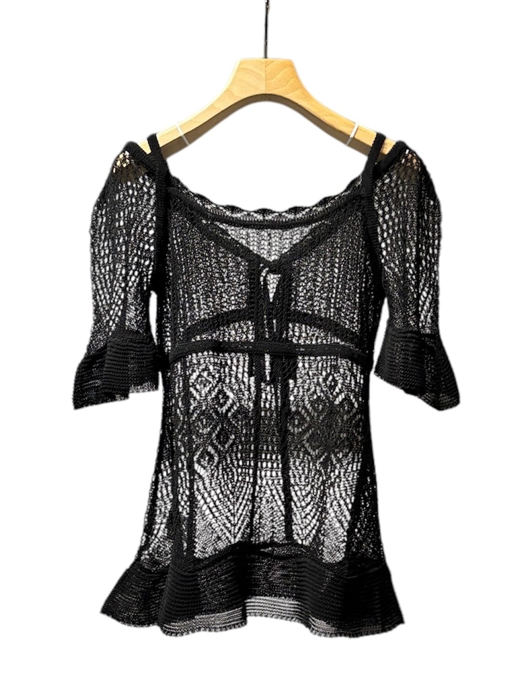 網み目が大きくレースの様な感覚で着ていただけるトップスです。