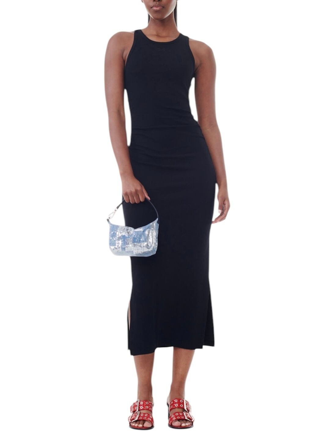 GANNI ガニー / BLACK SOFT COTTON RIB TANK TOP LONG DRESS