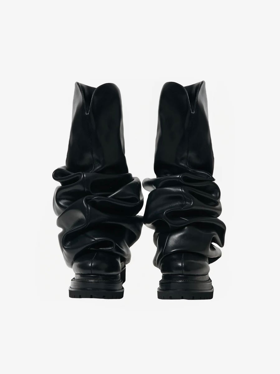 ・本来すっきりとした足元に見せるブーツをドロドロに溶かしたデザイン。