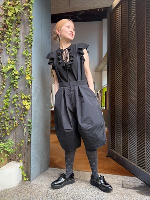 ハリ、コシがある素材のバルーンシルエットのサロペット