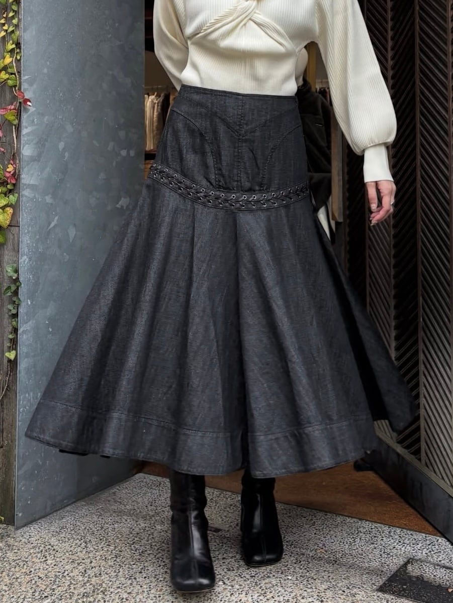 【25AW】FETICO フェティコ / Lace up denim flare skirt / デニムスカート