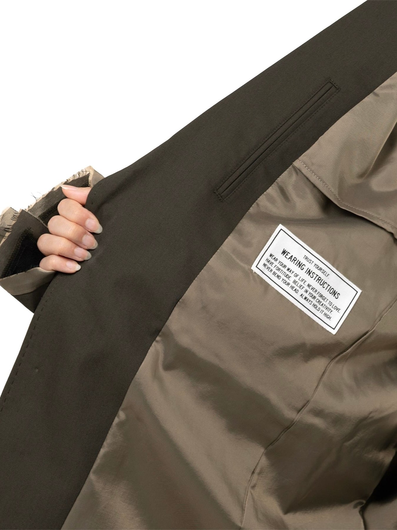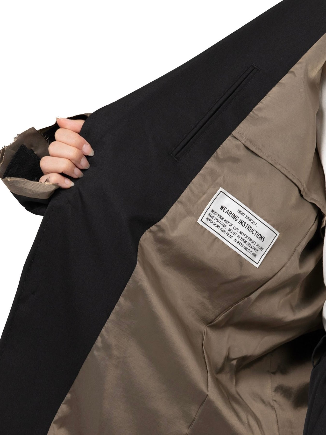 袖口、裾はまるで裏地が出てしまったようなデザイン。