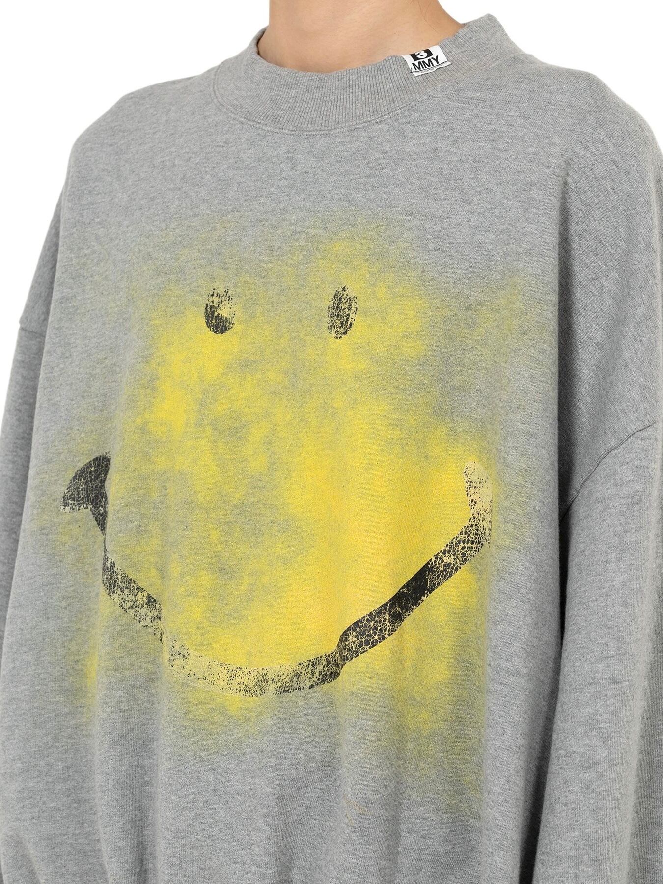 フロントにスマイリーフェイスがプリントされたスウェットシャツ。