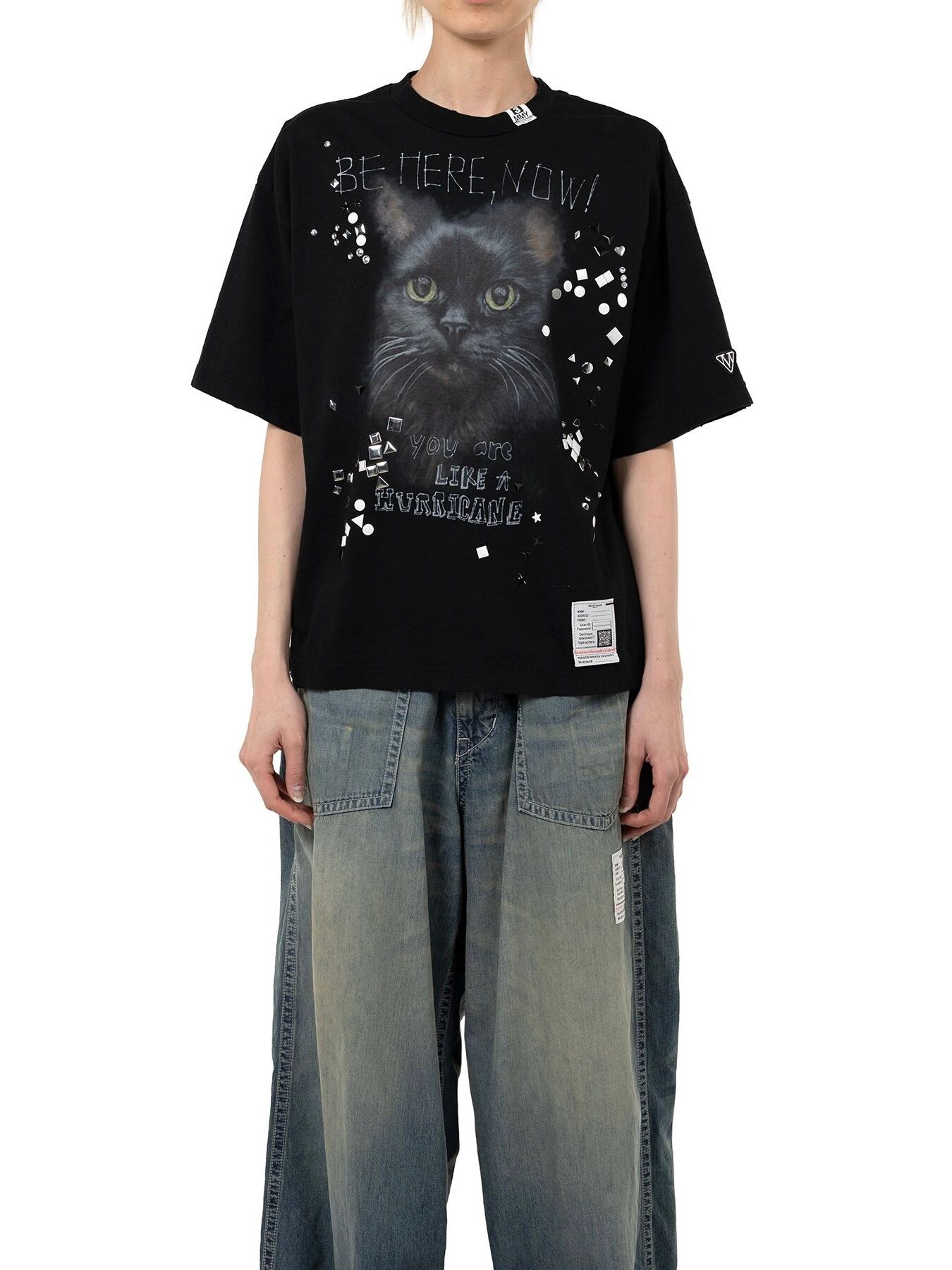 Maison MIHARA YASUHIRO メゾンミハラヤスヒロ / Cat Printed Embellished Distressed T-Shirt