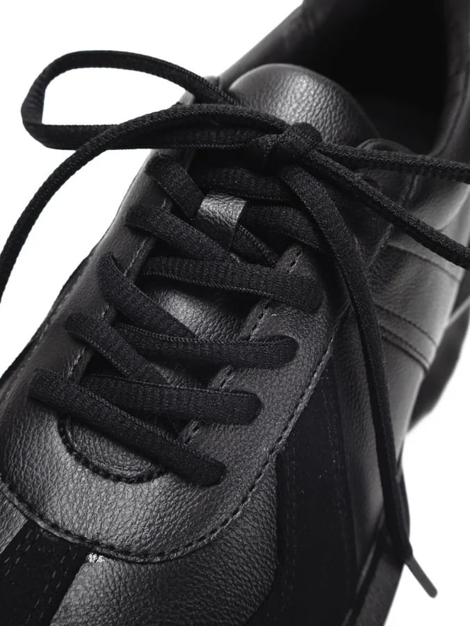 合皮のクラシカルな質感と、スポーティーなソールのコンビネーションが特徴です。