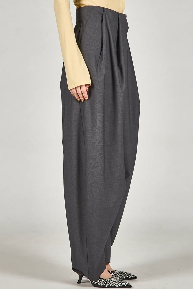 ドレープが目を惹くモード感漂うパンツ。