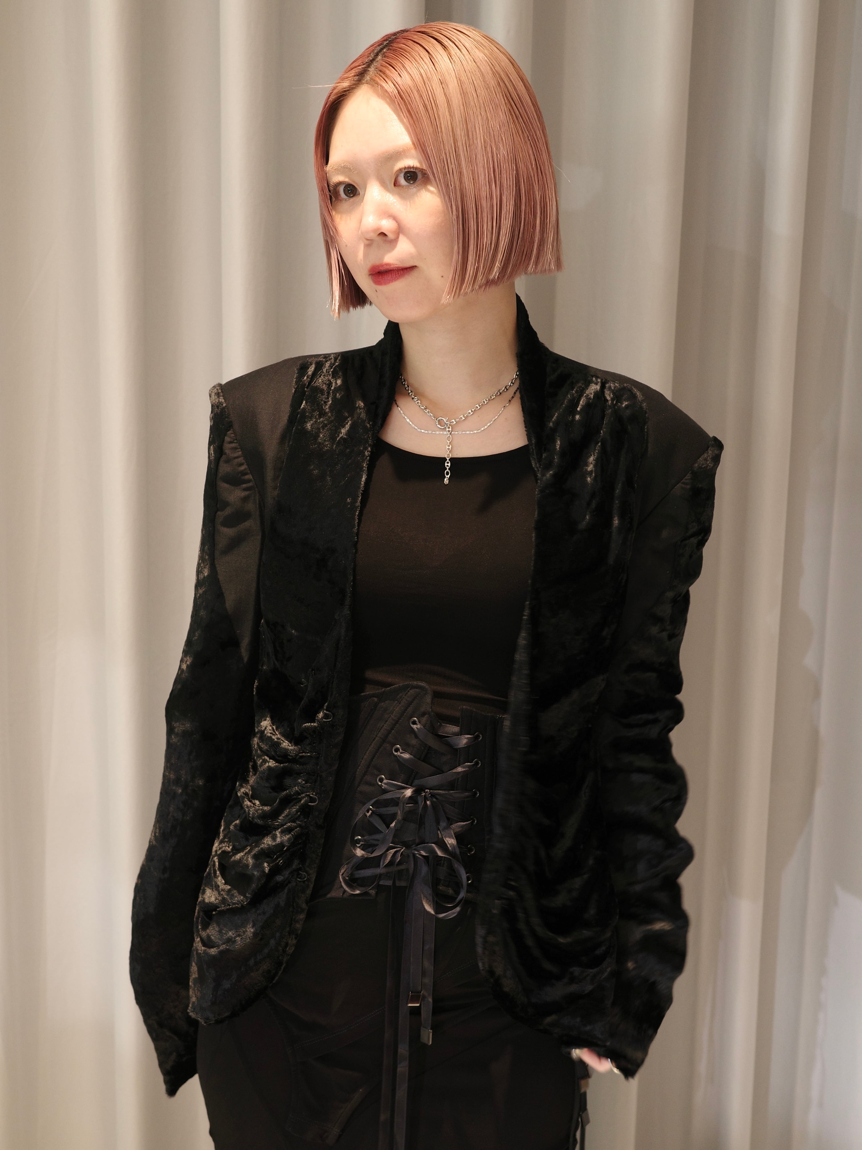 身頃中央にギャザーを寄せることで自然な立体感と奥行きを生み出し、
