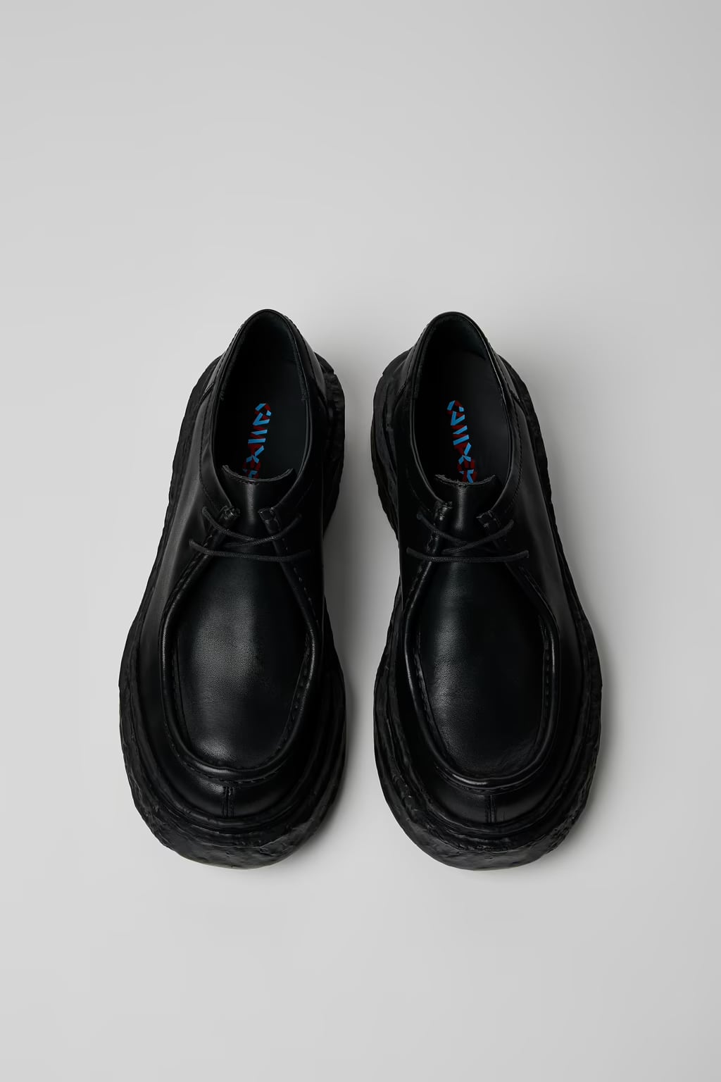 「VAMONOS(バモノス)」は、カンペールラボの新しいスマートラインで、カウボーイに着想を得た「VENGA」からインスパイアされ生まれました。特徴的な丸みを帯びたオーバーサイズのボリュームとプロポーション、クラシックなスタイルにツイストを効かせています。トラディショナルなモカシンスタイルですが、単色のシャイニーレザーとチャンキーなソールがモダンで新鮮な足元を演出します。