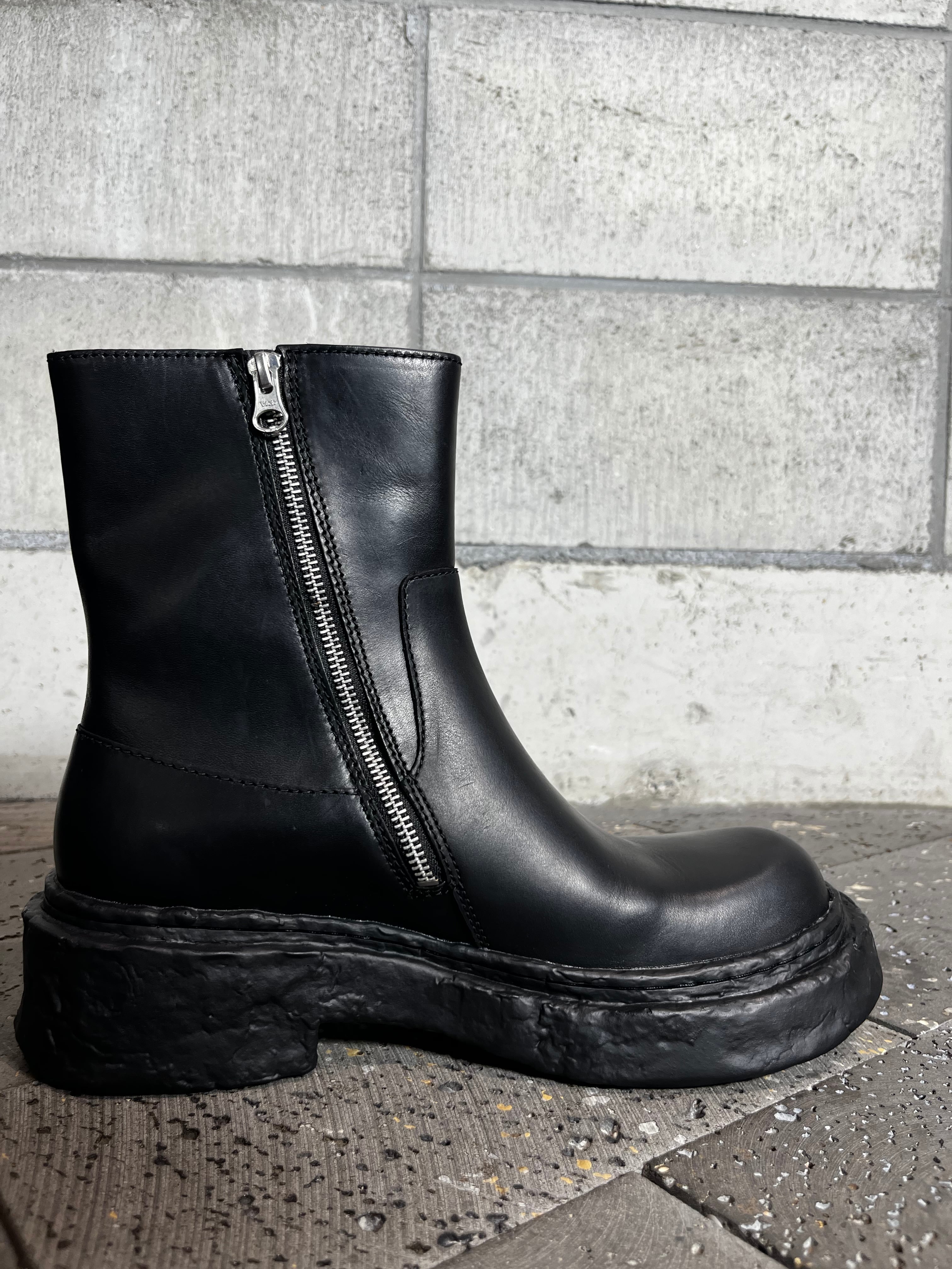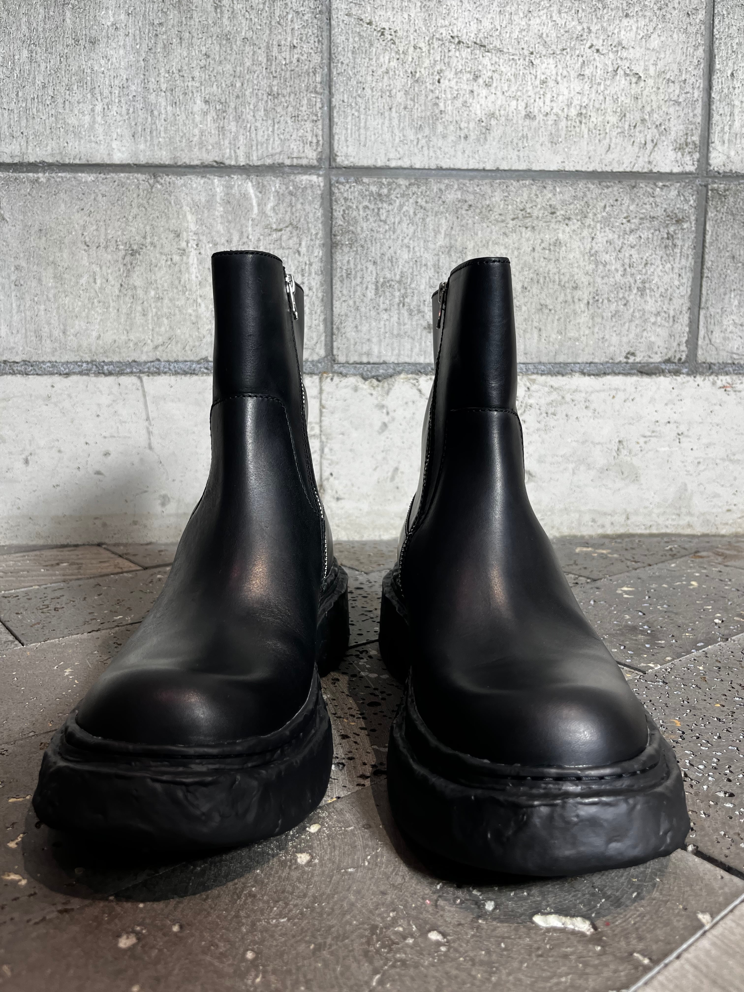 「VAMONOS(バモノス)」は、カンペールラボの新しいスマートラインで、カウボーイに着想を得た「VENGA」からインスパイアされ生まれました。特徴的な丸みを帯びたオーバーサイズのボリュームとプロポーション、クラシックなスタイルにツイストを効かせています。トラディショナルなモカシンスタイルですが、単色のシャイニーレザーとチャンキーなソールがモダンで新鮮な足元を演出します。