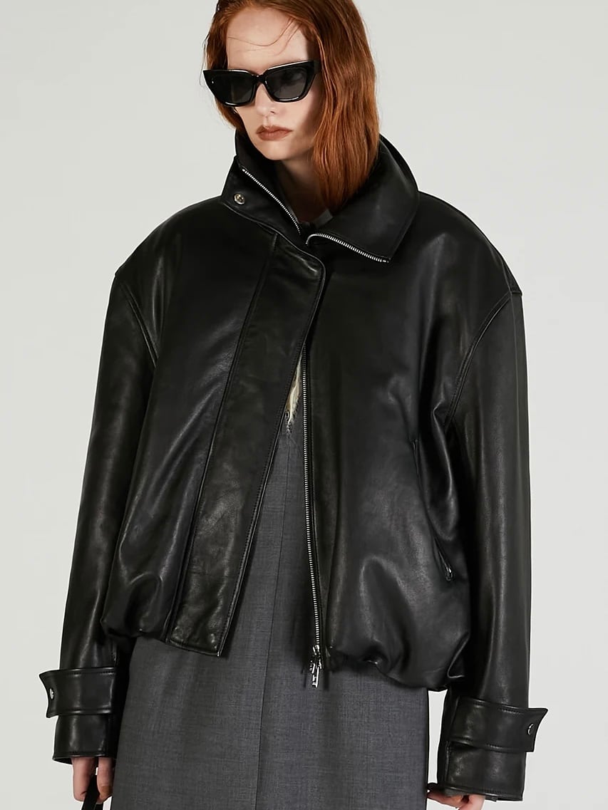 装飾やパーツ数を減らし、ミニマルでモダンに仕上げたレザーブルゾン。