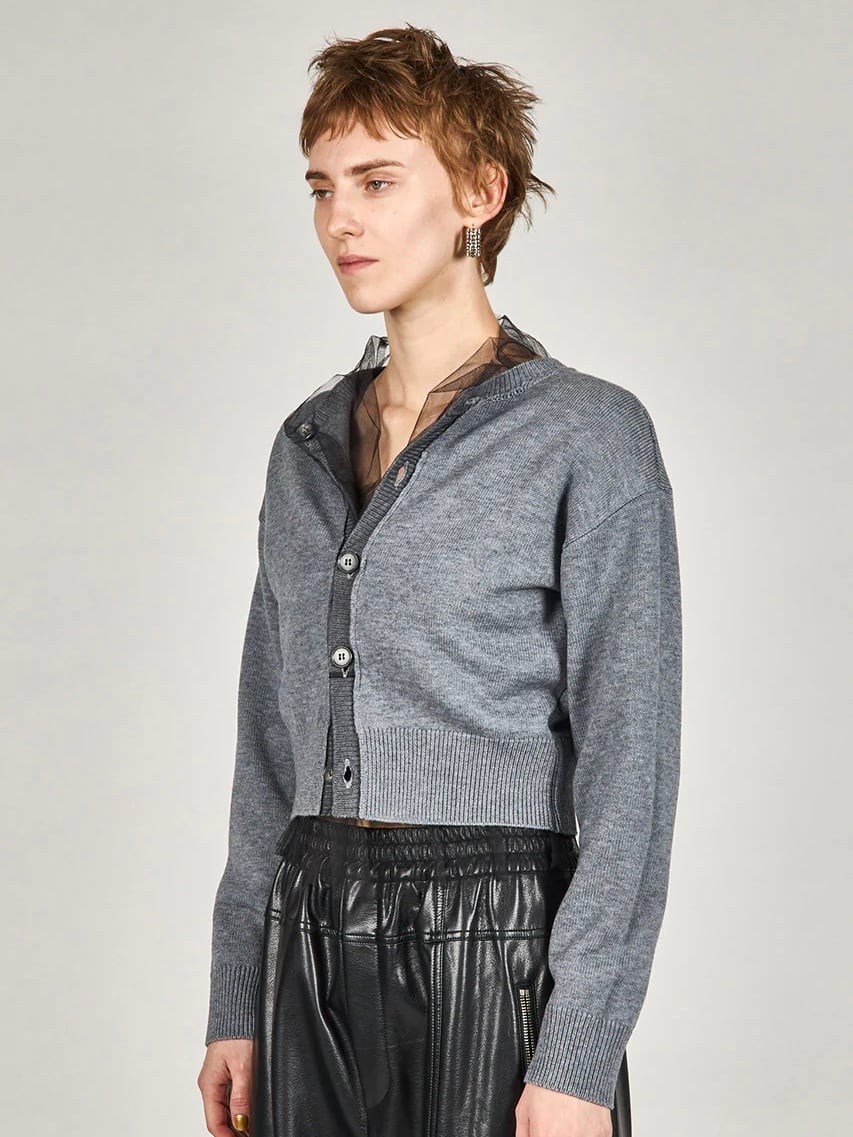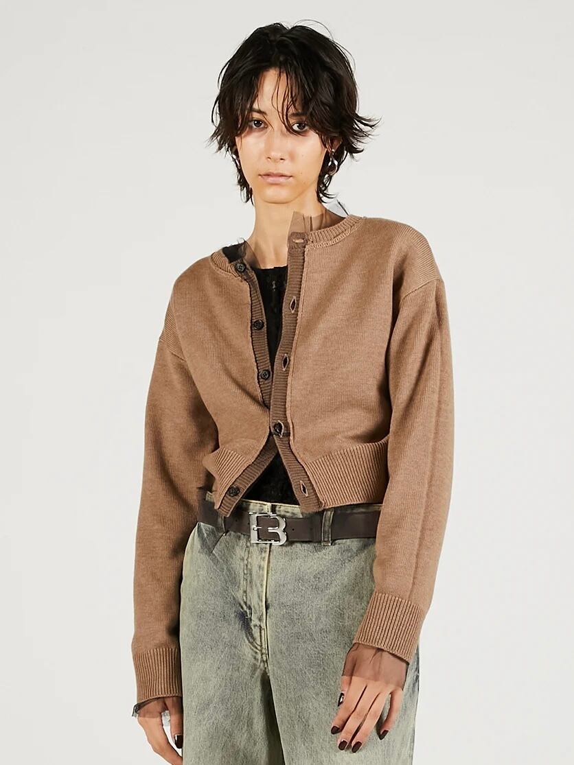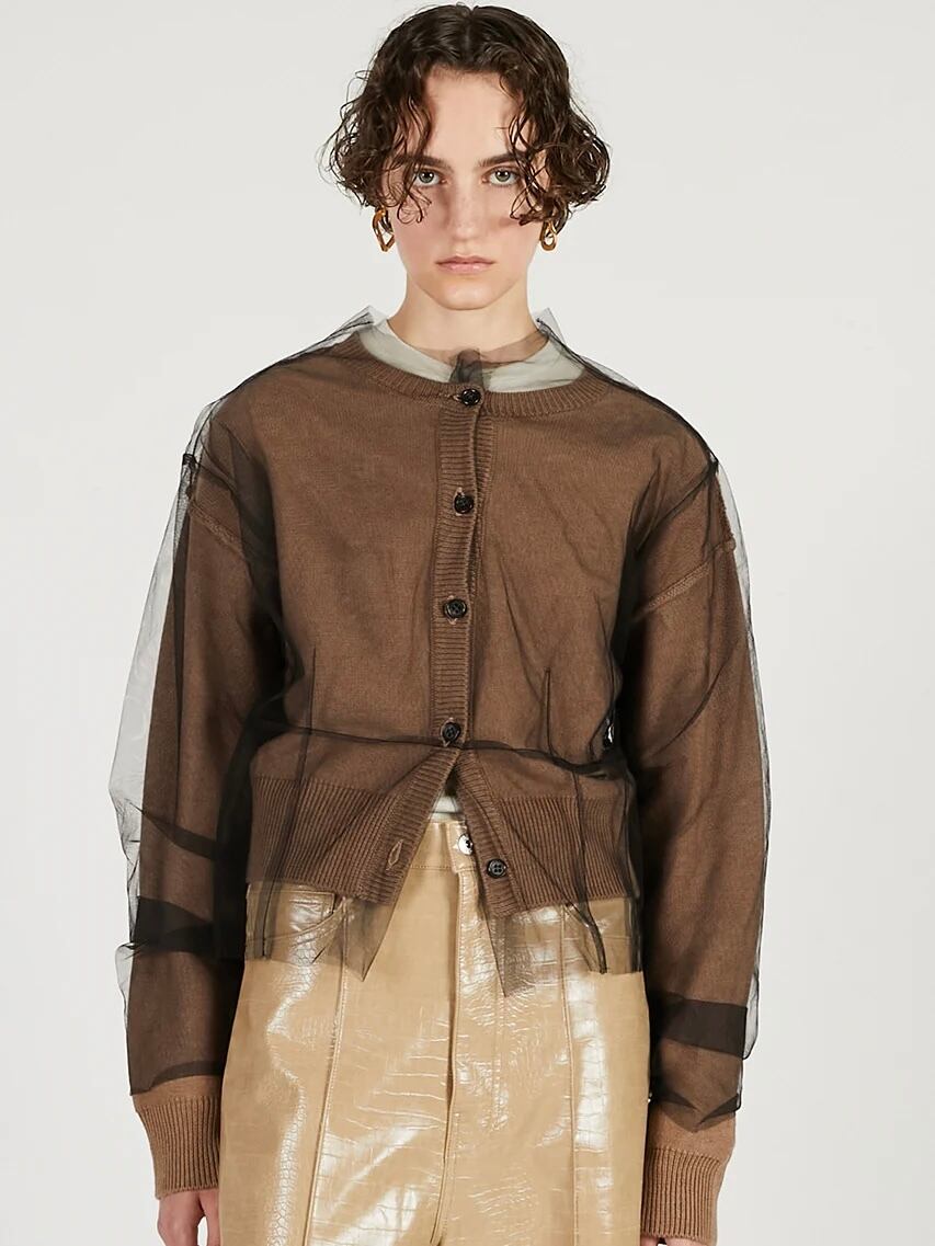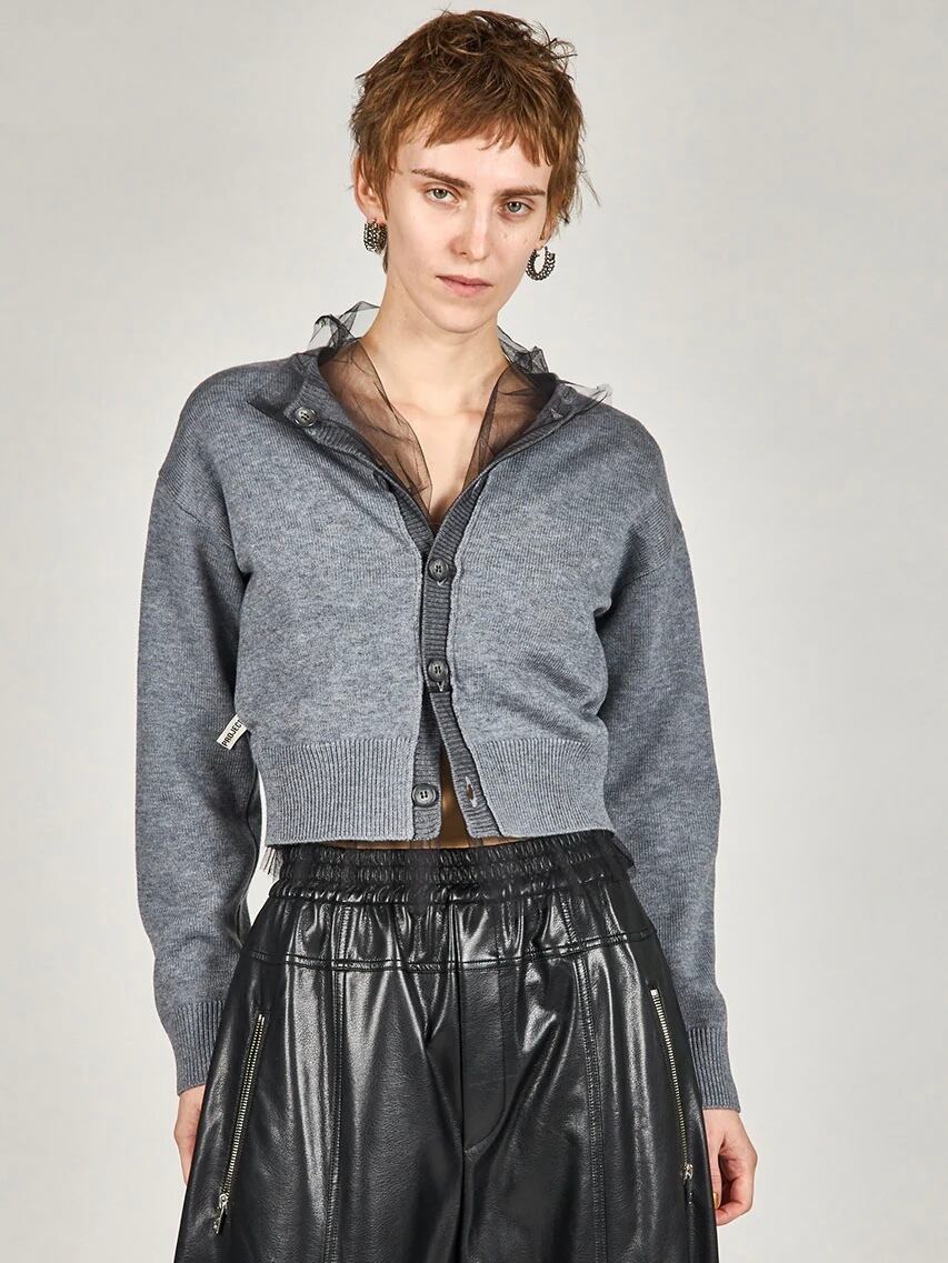 軽やかなチュールを組み合わせたリバーシブル仕様のニットカーディガン。