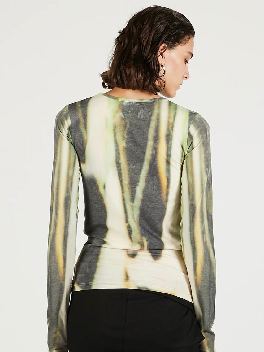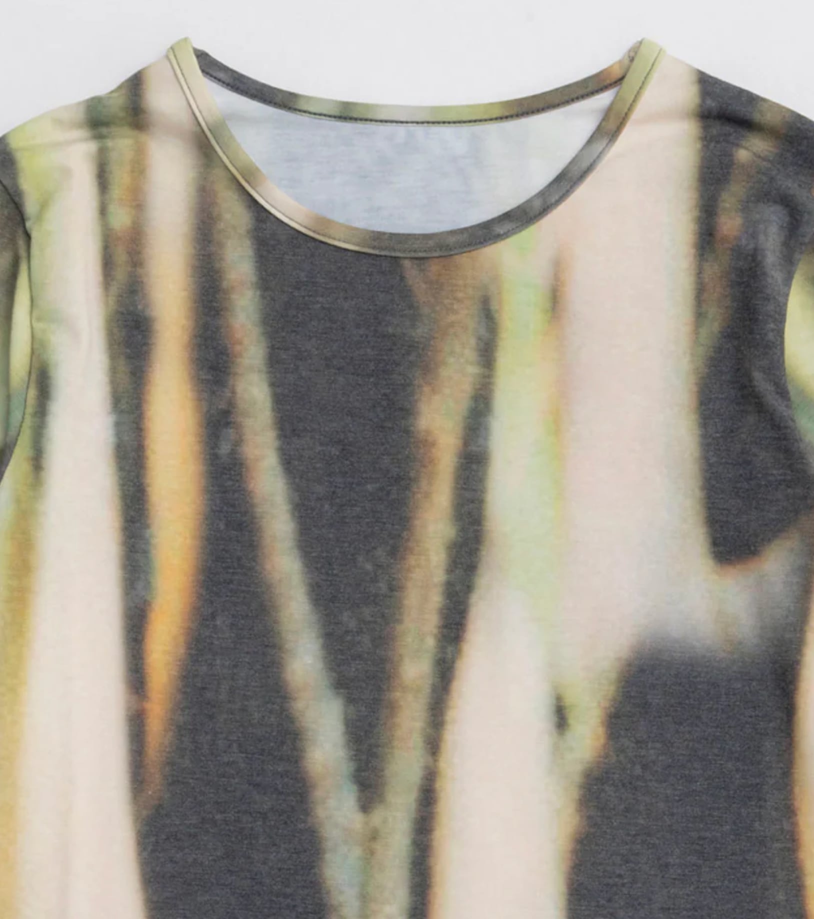 ニュアンス感のあるフォトプリントを施したクルーネックトップス。
