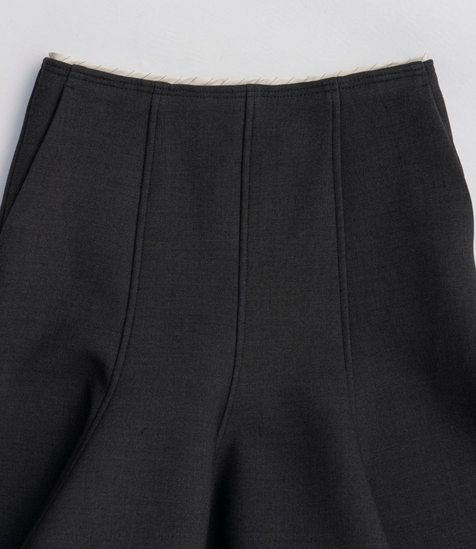 裏面に芯地を貼ることで構築的な張りを持たせたフレアースカート。