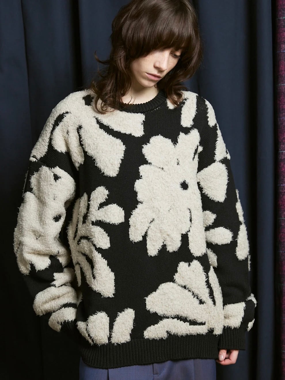 MAISON SPECIAL / Botanical Jacquard Prime-Over Crew Neck Knit Pullover