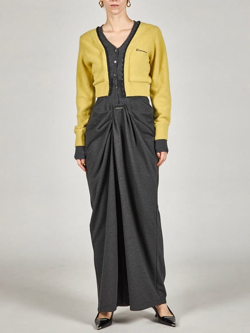 体に布を巻き付けたようなドレープを入れたジャージーワイドパンツ。