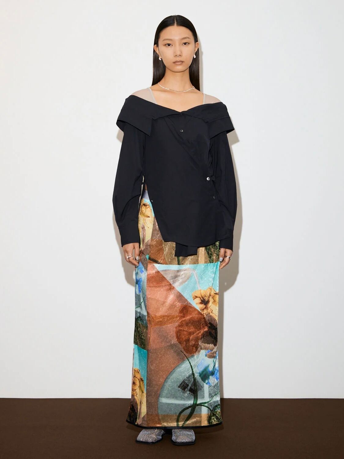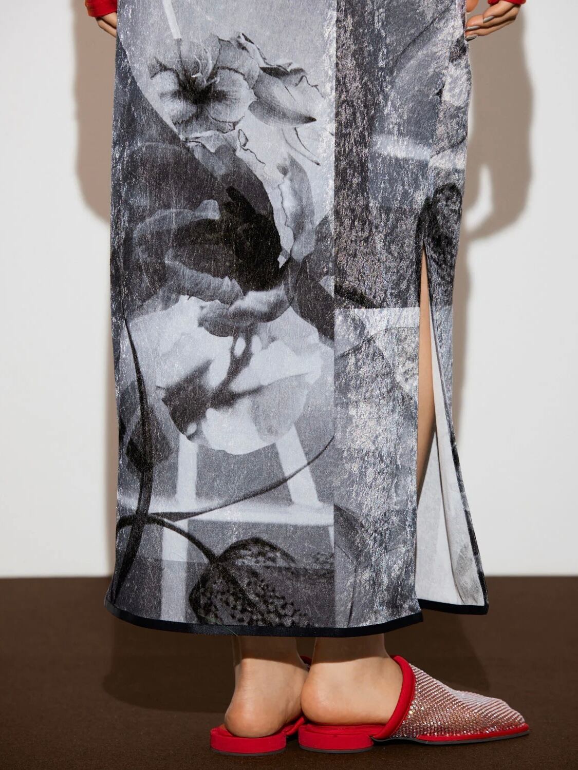 THINGS THAT MATTER シングスザットマター / PRE-SENT PRINT VELOUR NARROW SKIRT