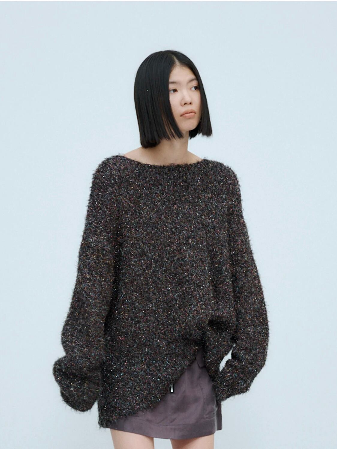ラメファーがしっかりときらめく、ブランドらしい存在感のあるニットプルオーバー。