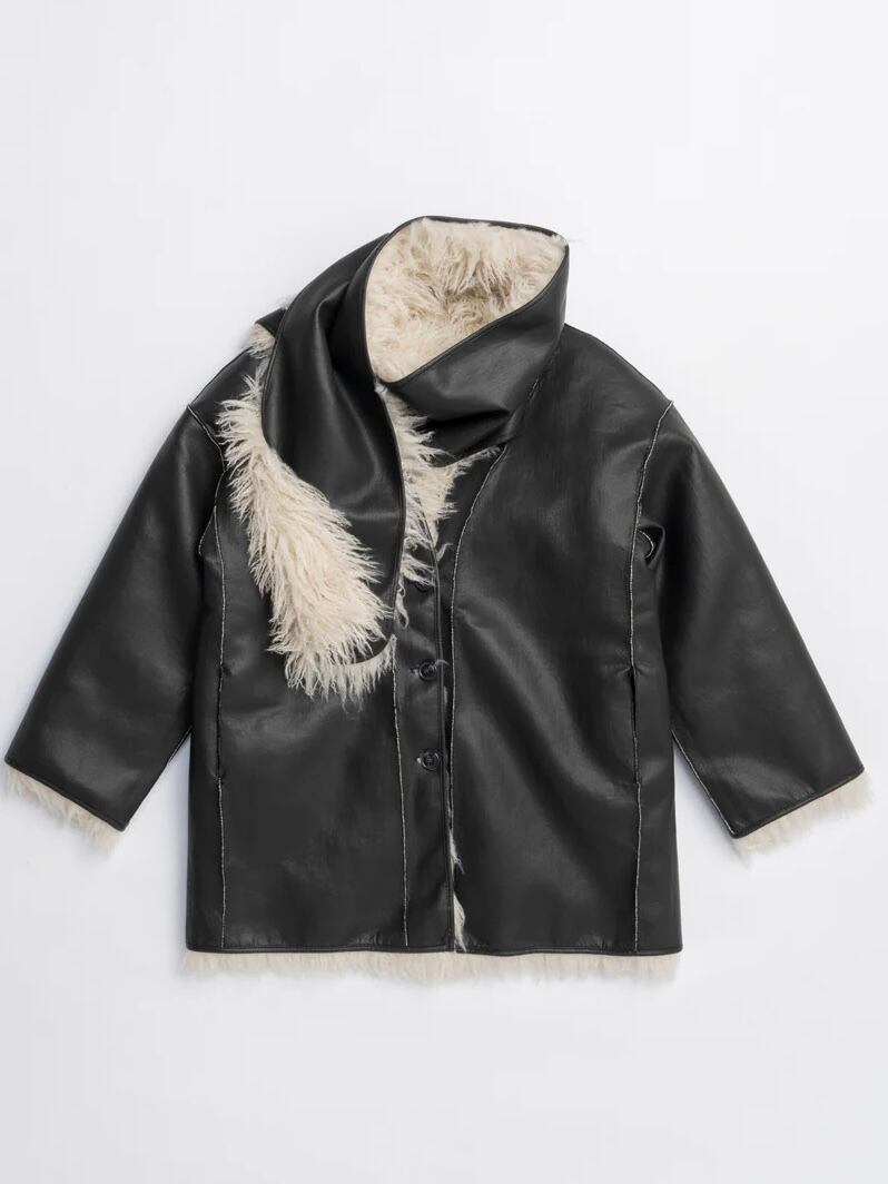 ファーとレザーという全く異なる表情でリバーシブルで着用できる一着。
