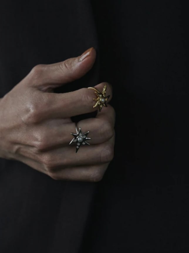 淡水パールとジルコニアを使用した遊びのあるデザインのリングです