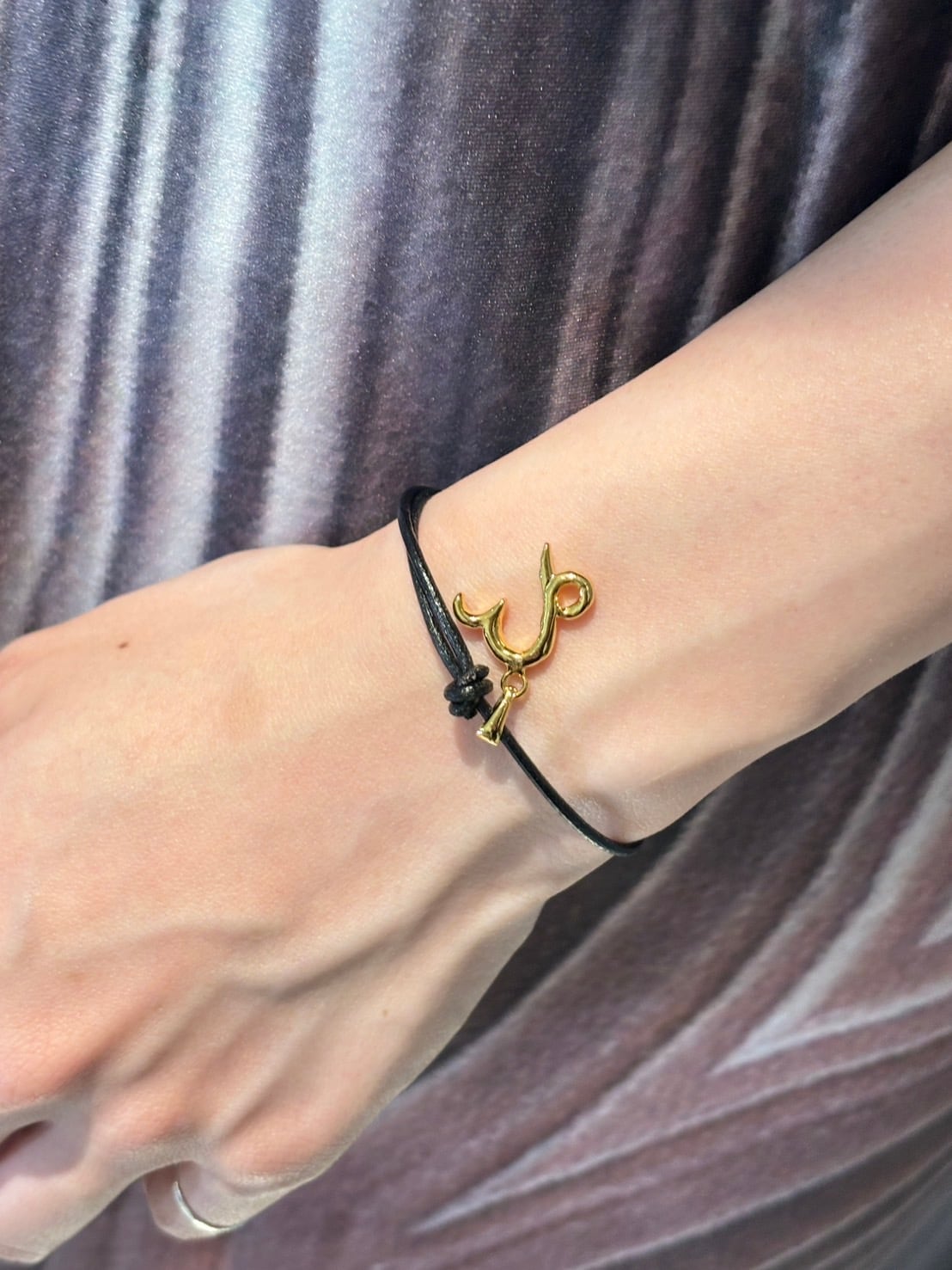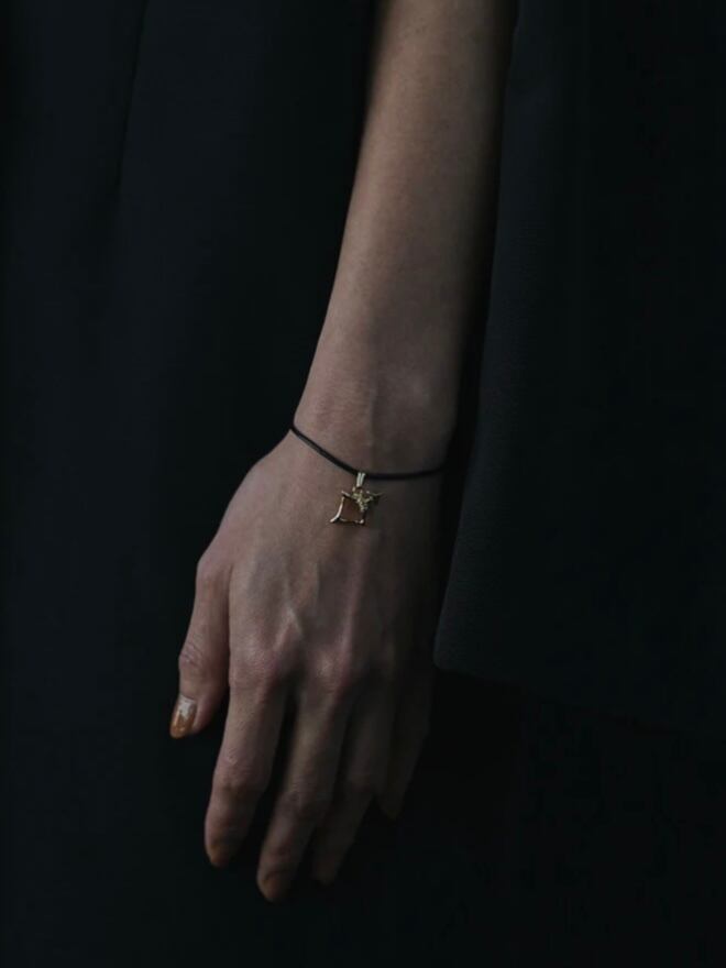 華奢なレザーコードを使用したミサンガブレスレット。