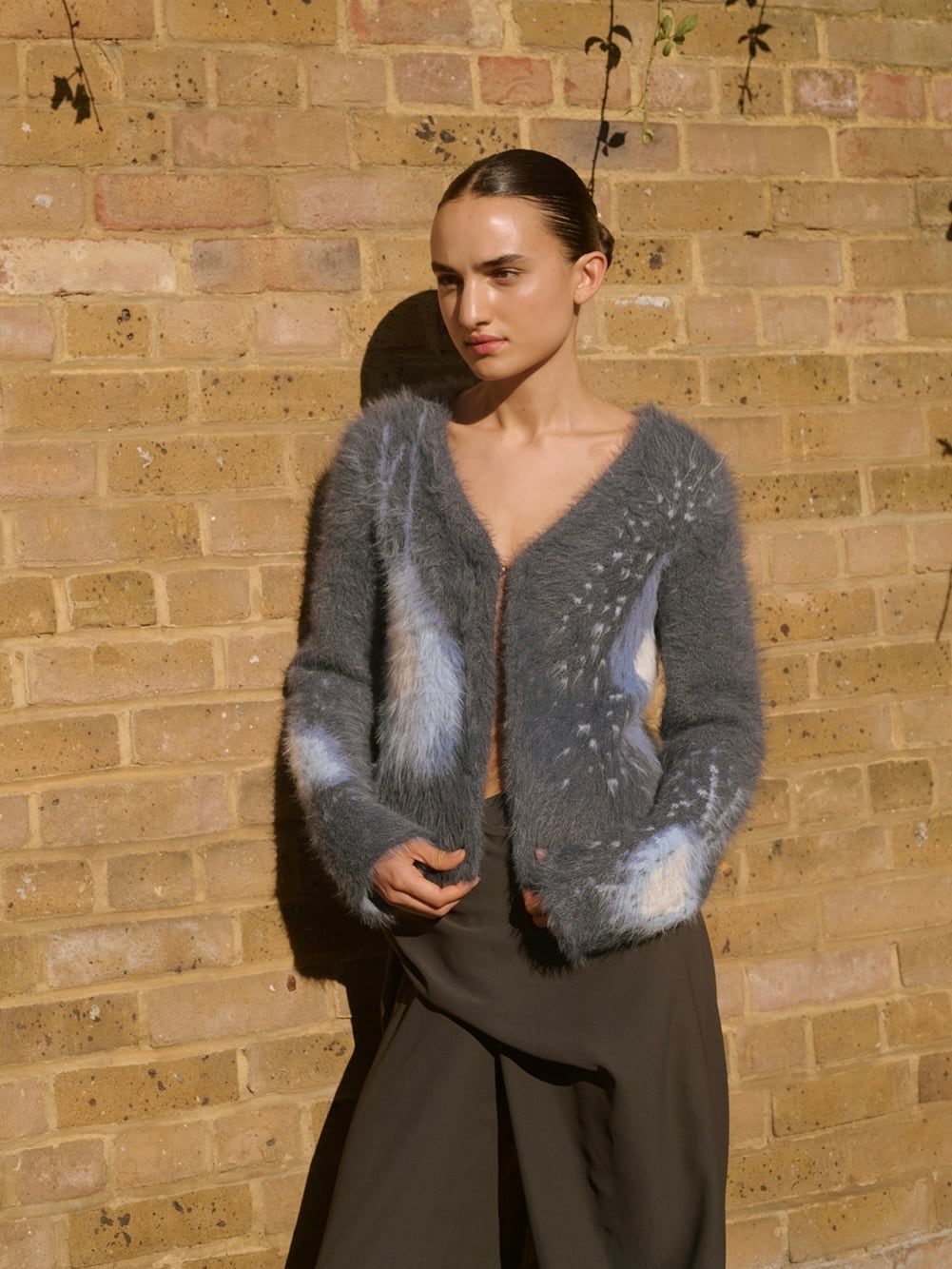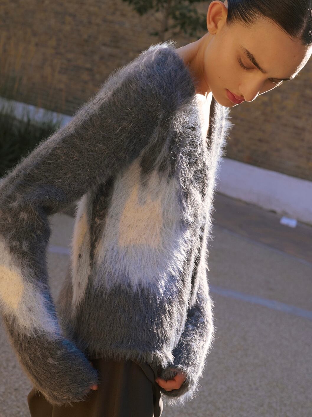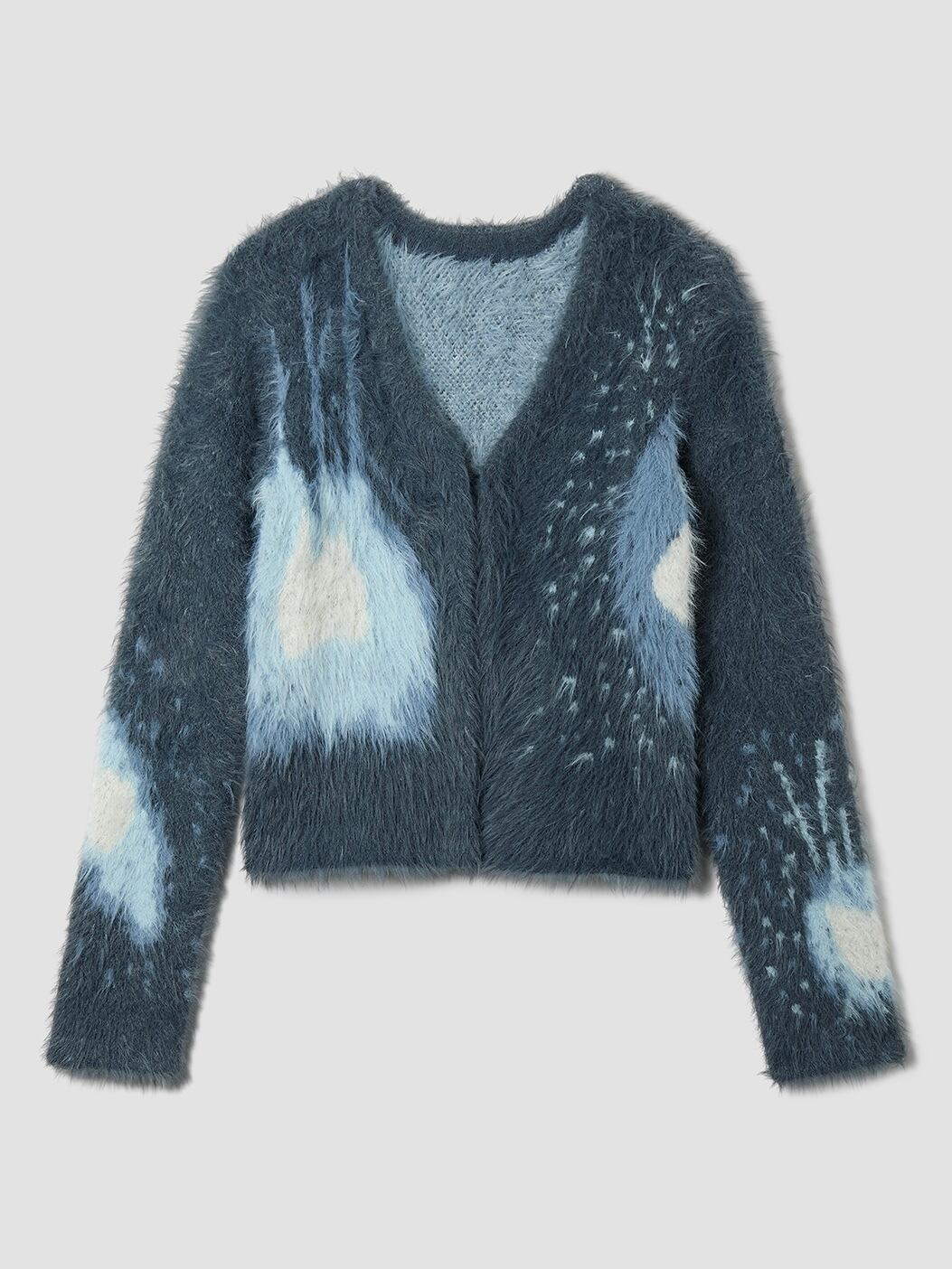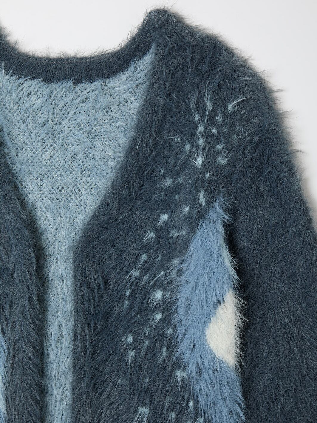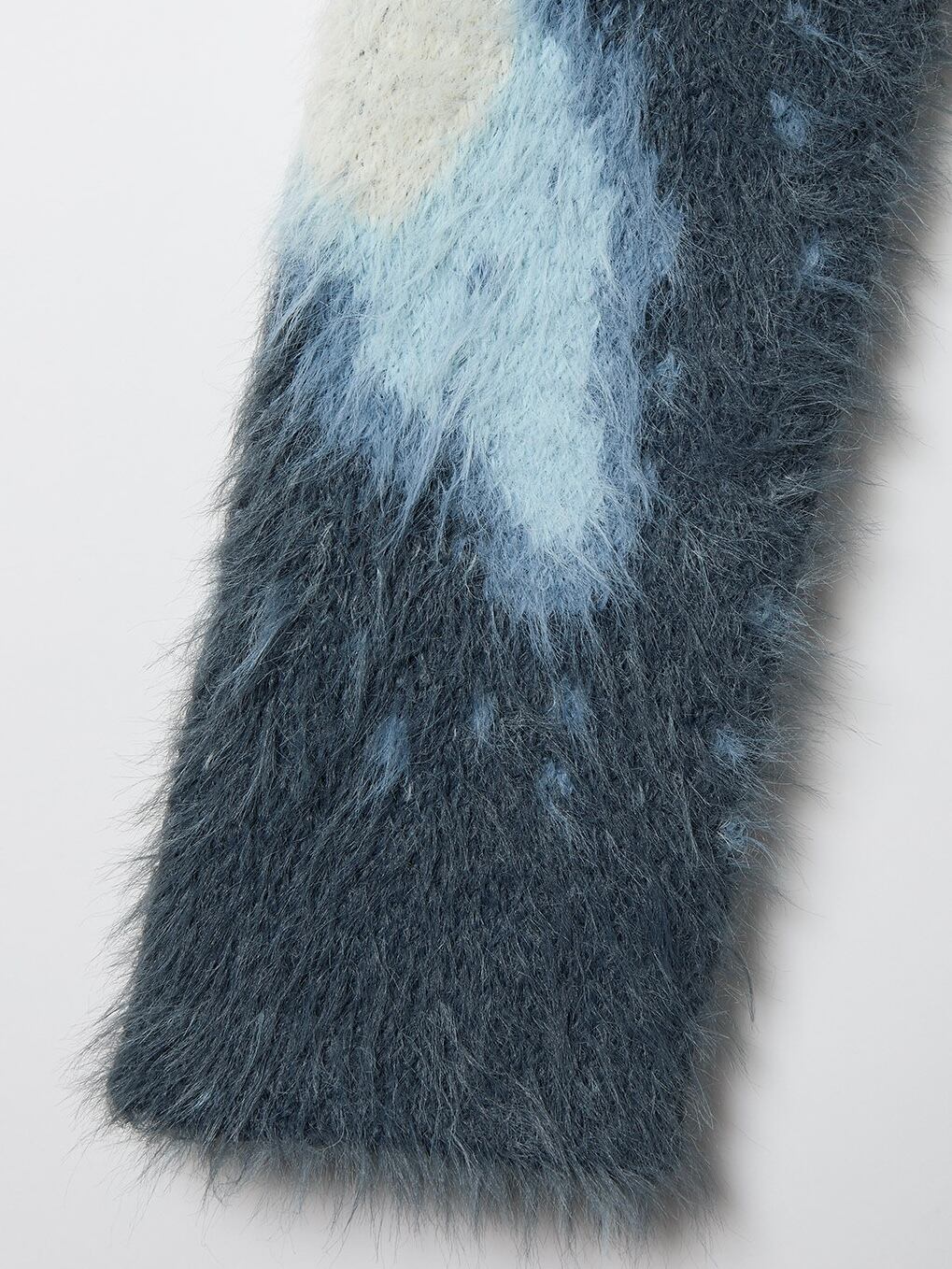 毛足の長いフェザーヤーンに、さらに起毛の加工を施すことで、