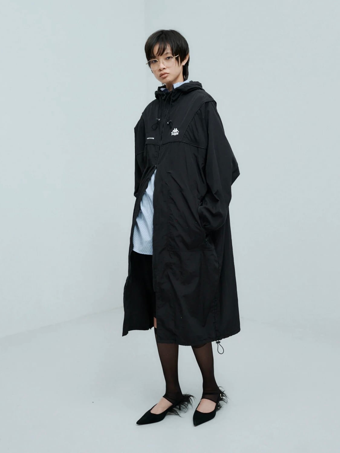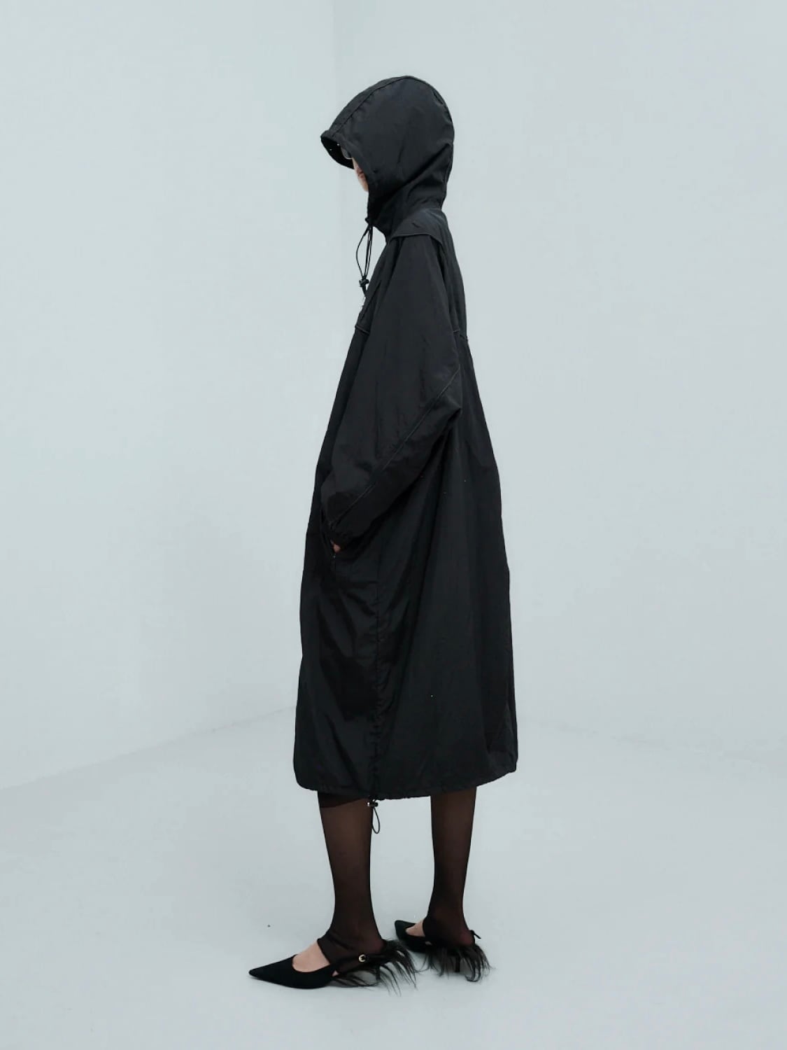 ユニセックスデザインのカッパ。撥水性を兼ね備えた軽量な一着で、アウターの上からも羽織れる実用性を備えています。裏地のない仕様とゆったりとしたシルエットによって、重ね着してもごわつかず、自然なフィット感で着られます。裾を絞ればスタイリングに変化を加えられるなど、日常使いにもおすすめのアイテムです。