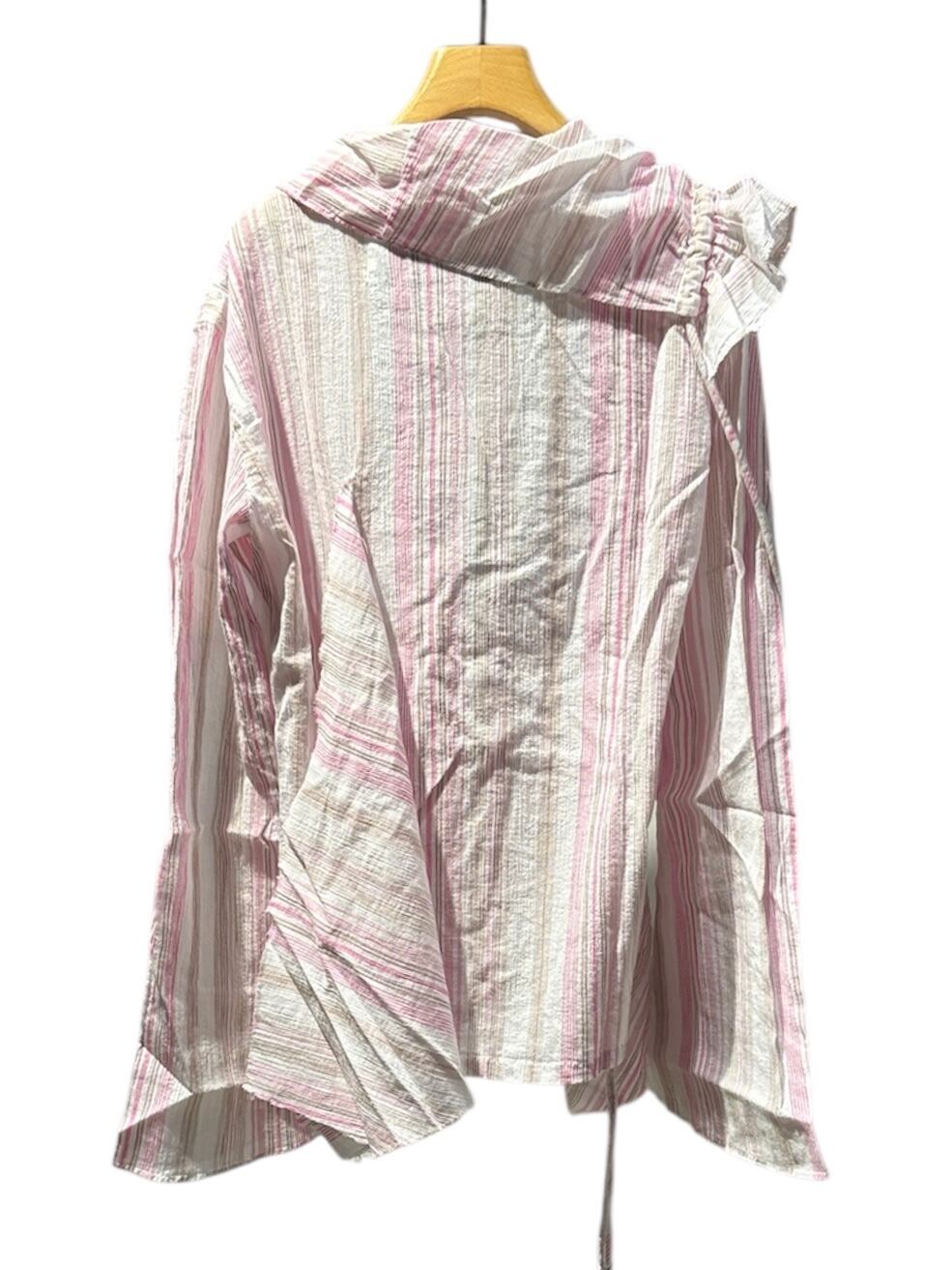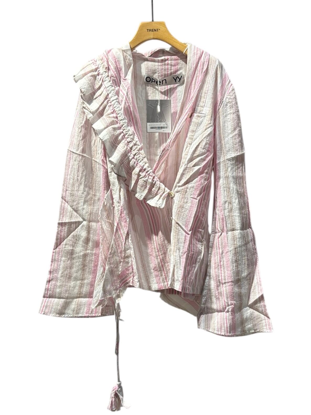OPEN YY オープン ワイワイ / UNBALANCED RUFFLE STRIPE BLOUSE