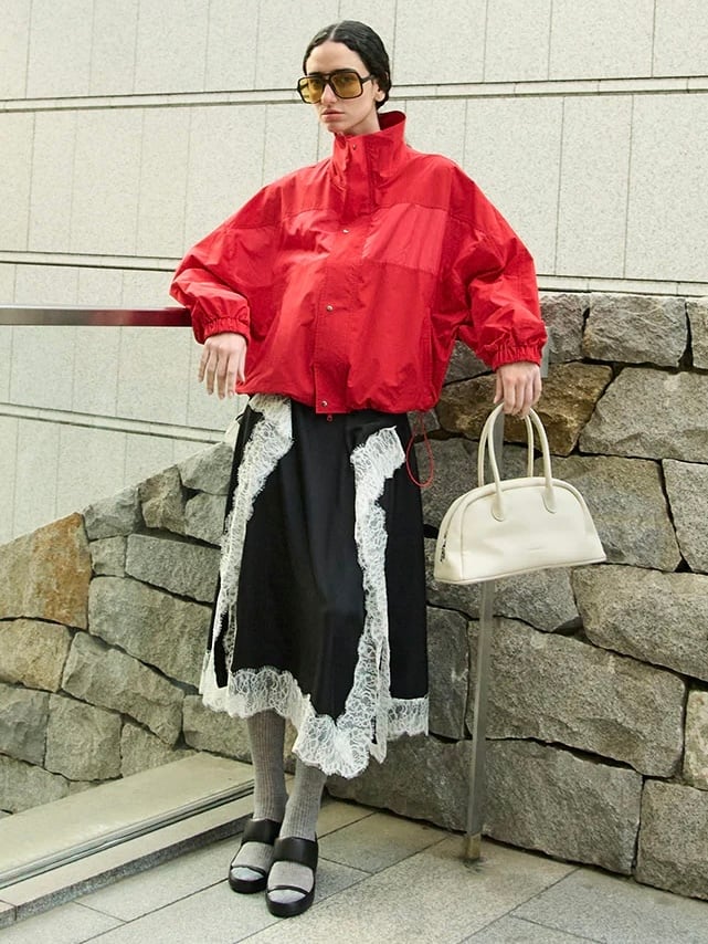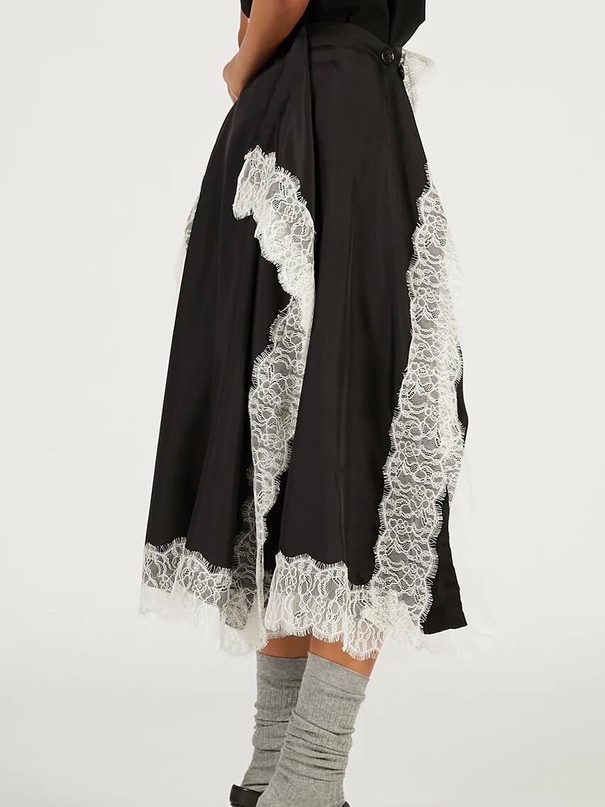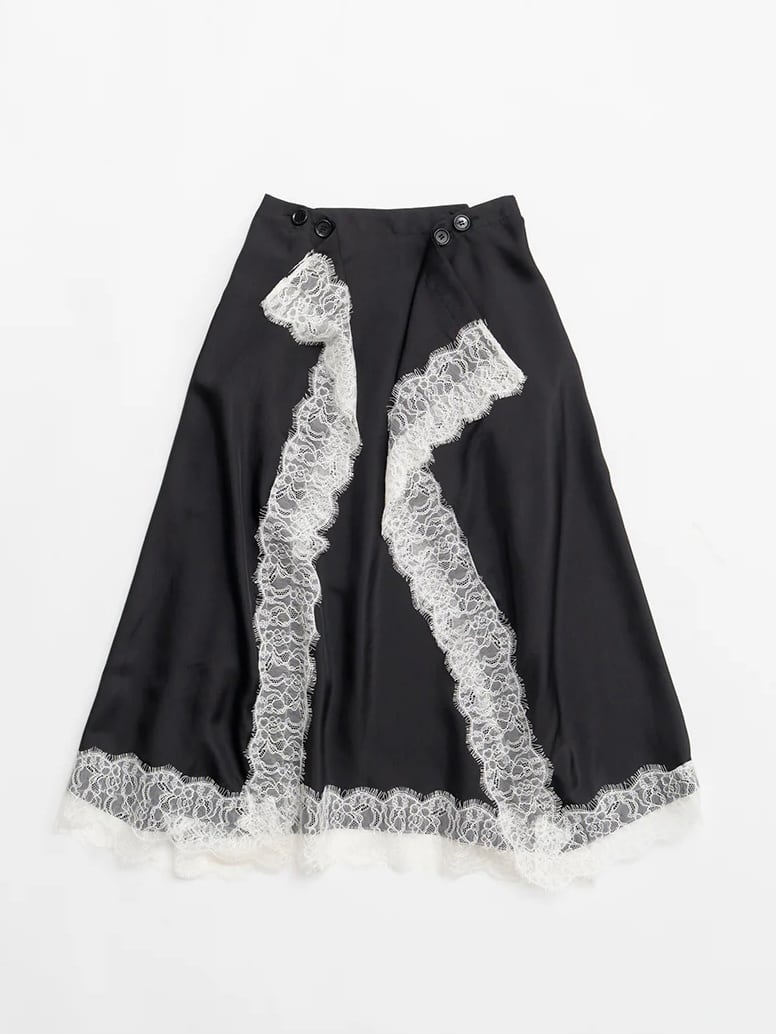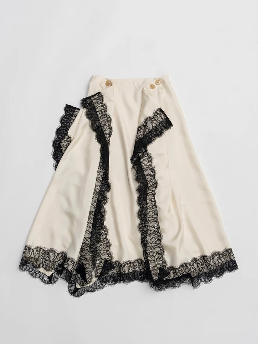 レーストリムをあしらった四角いパネルのみで構成されたスカート。