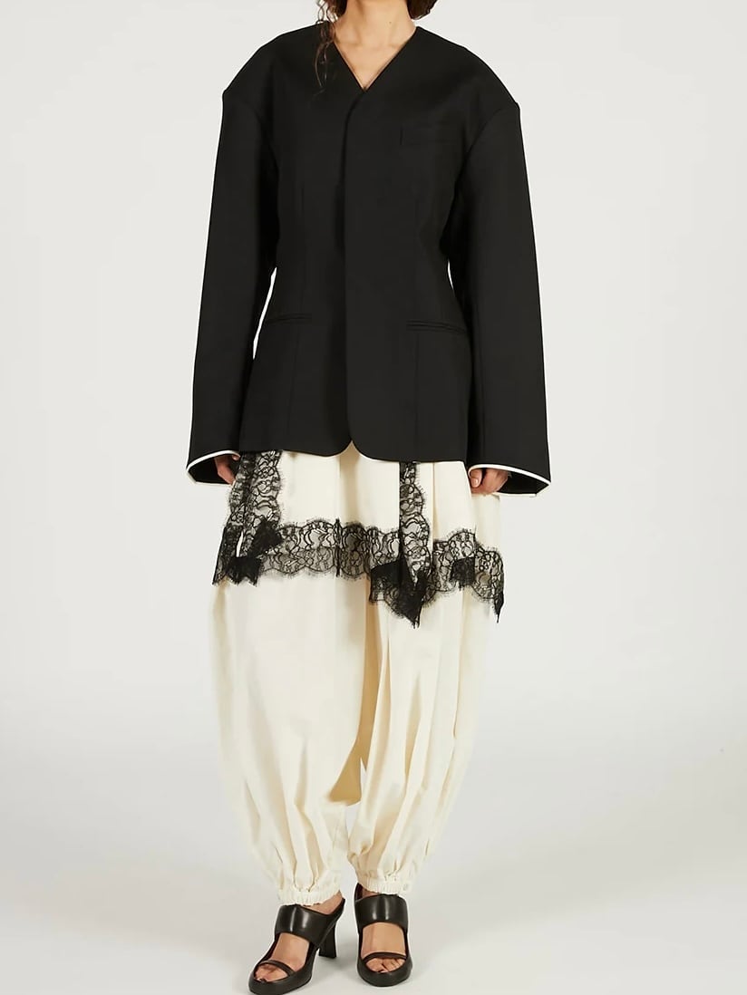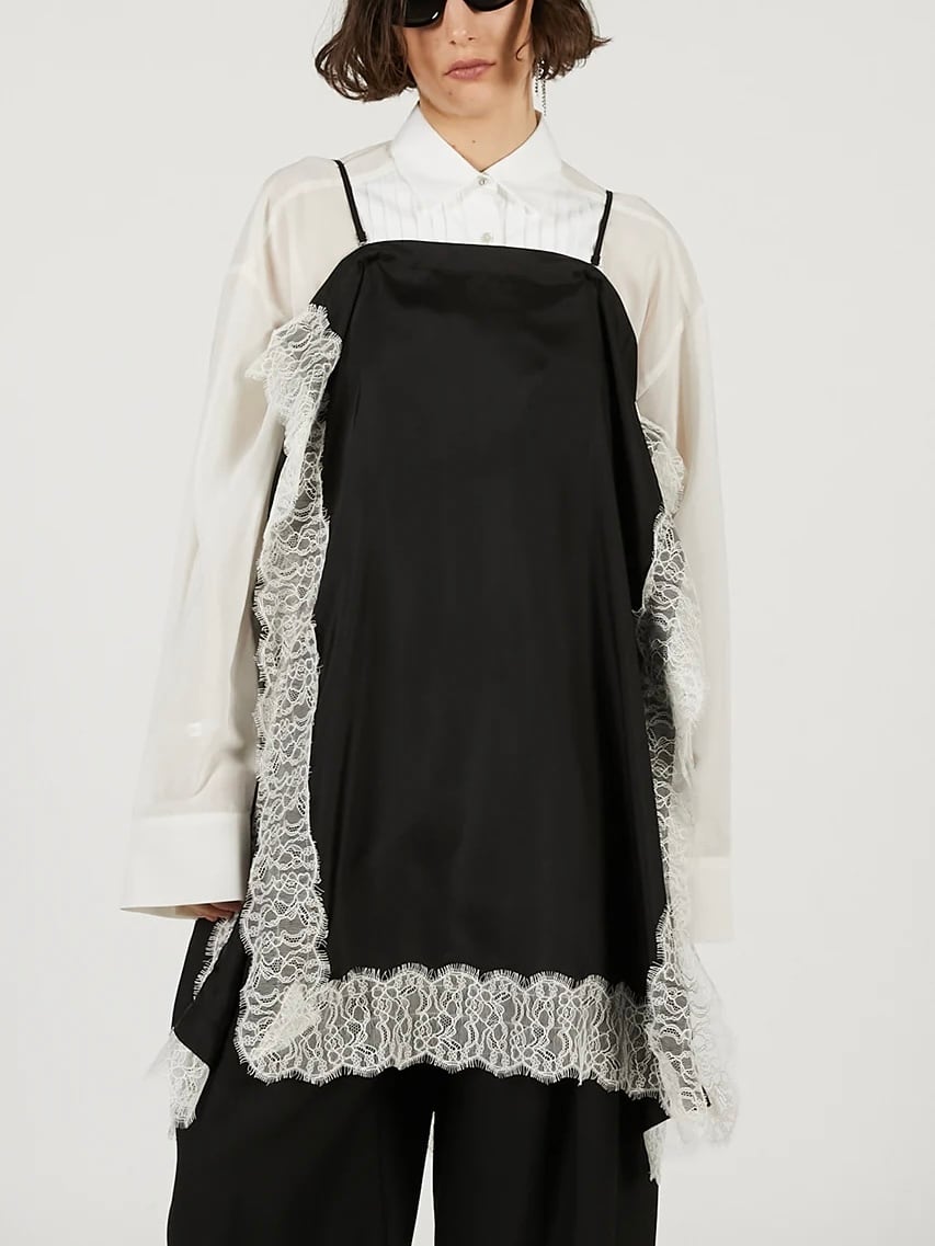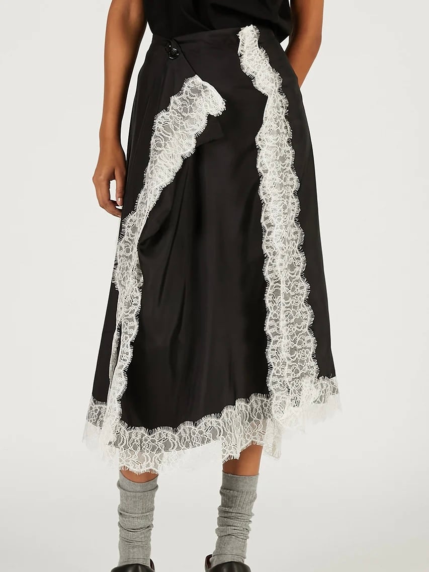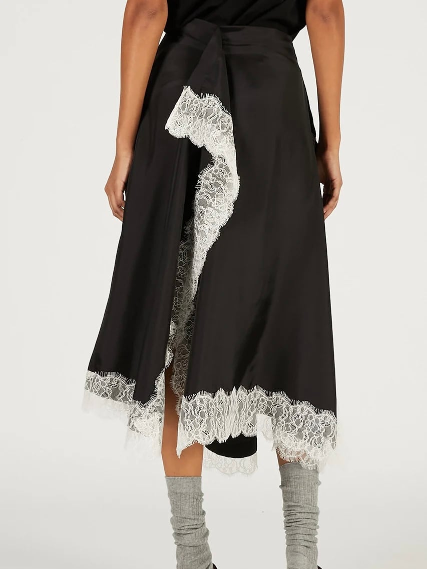 レーストリムをあしらった四角いパネルのみで構成されたスカート。