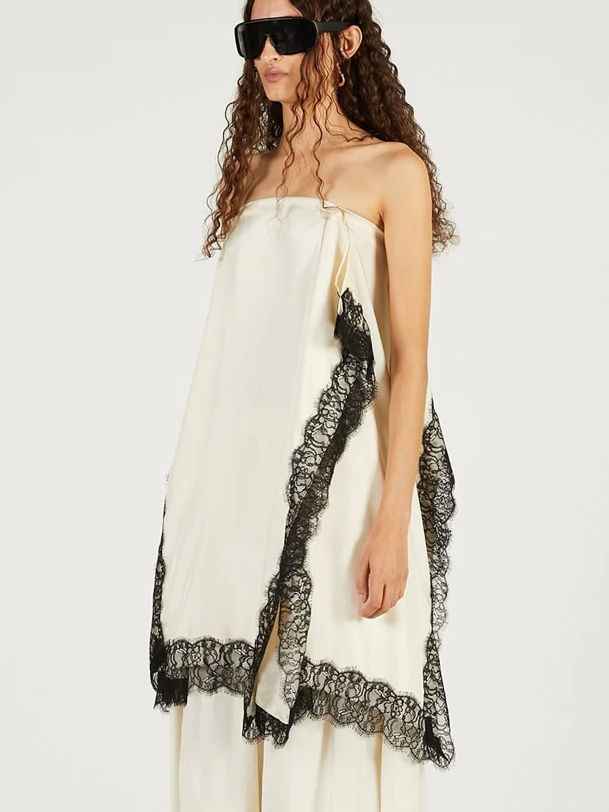 取り外し可能なストラップ付きで、ベアトップドレスとしても着用可能。
