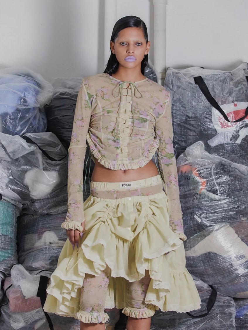 「POOLDE(プールデ)」は、元「PAMEO POSE」のデザイナー・PELI(ペリ)が2024年に立ち上げた新しいファッションブランドです。ブランドコンセプトは「実際にあった架空の話」。夢の中のような違和感や、現実と虚構が交錯する世界観をデザインに落とし込み、日常に溶け込む“違和感がほのめく”レディトゥウェアを提案しています。