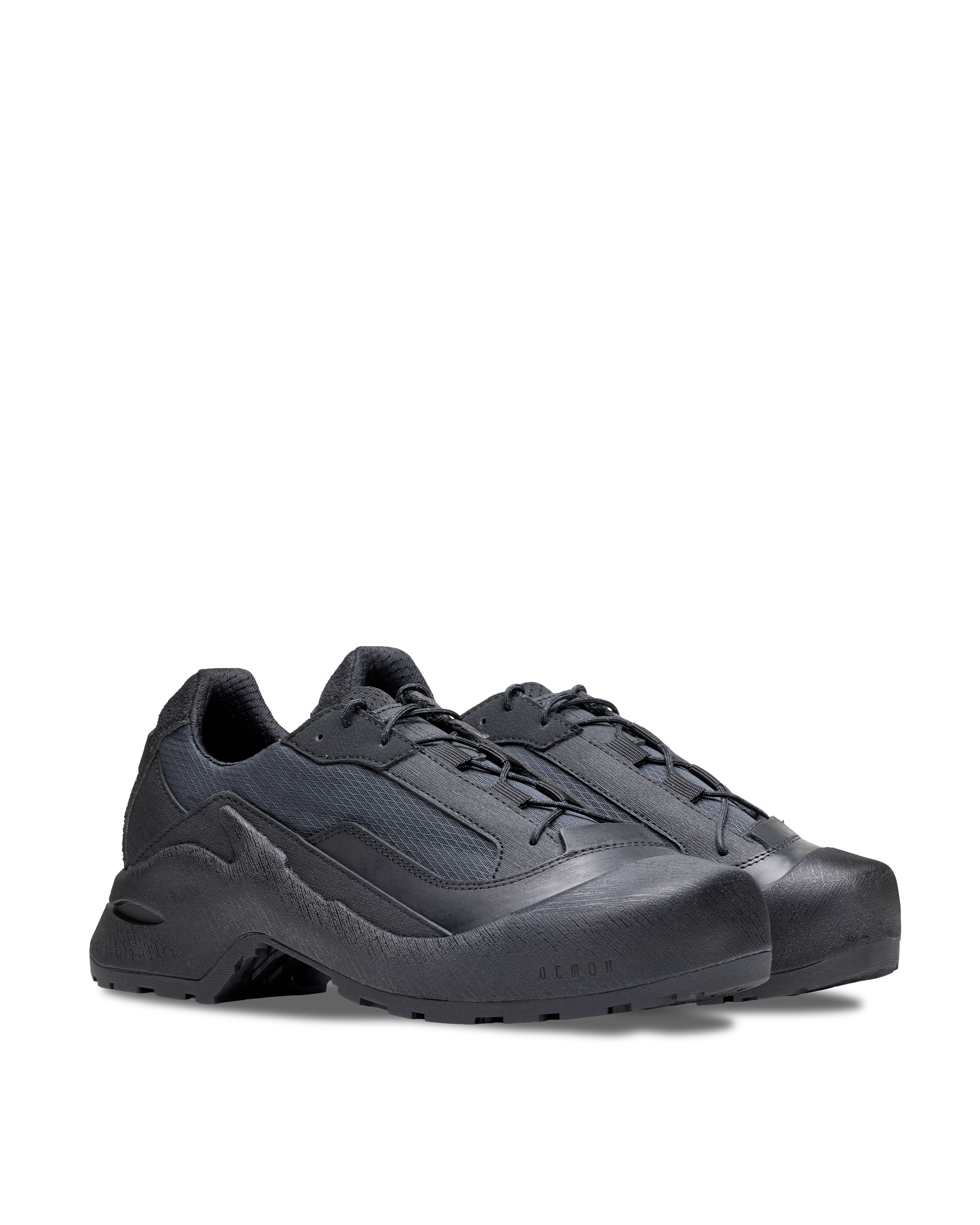 1963年に設立されたイタリアのフットウェアブランド DEMON は、Alberto Deon のアートディレクションのもと、2020年に復活を遂げました。 現代によみがえったこの老舗ブランドは、その反体制的で高性能なデザインの中に、イタリア北東部の街モンテベッルーナにおけるアルパイン フットウェア作りの伝統を盛り込んでいます。 アーカイブのシルエットを前衛的に再構築し、カルガンラムの毛皮のアッパーやPVC樹脂コーティングなどのディテールを採用することで、原点回帰的でありながら未来的、インダストリアルかつハイテクな美学を体現しています。 革新的な素材の調達と機能性を実現する手作業による製造はすべてイタリア国内で行なわれています。 主張のある上質なアウトドアシューズを提供する DEMON は、伝統の中に破壊力を縫い込んでいるのです