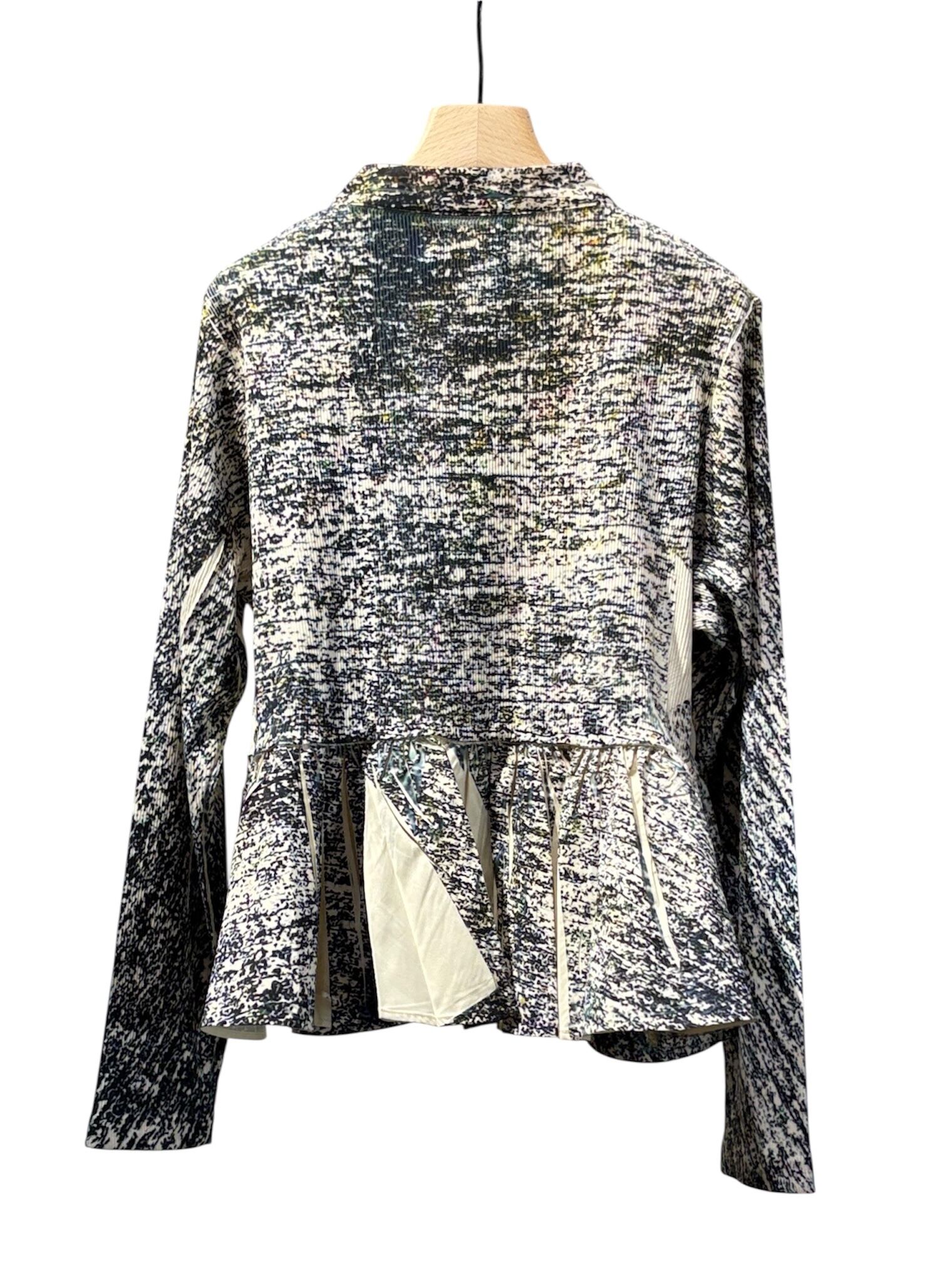 転写フォトプリントが施されたギャザーカーディガン。