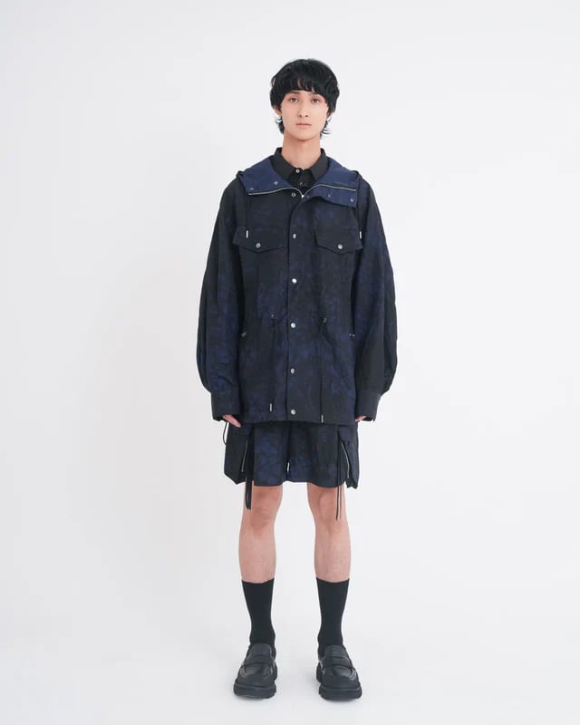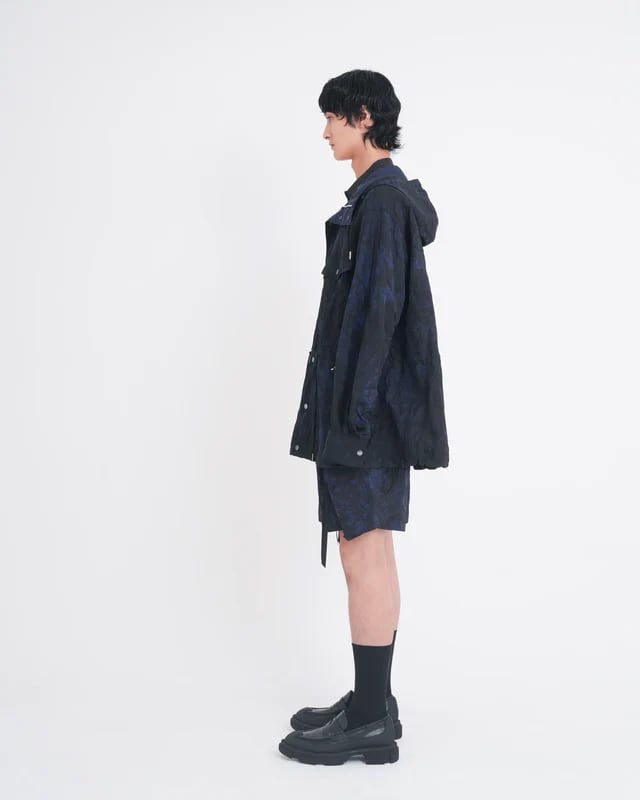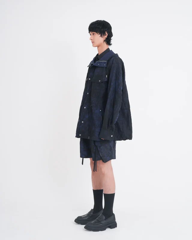 Tamme タム / TIE-DYED NYLON OXFORD PCS COMBAT SHORTS NAVY