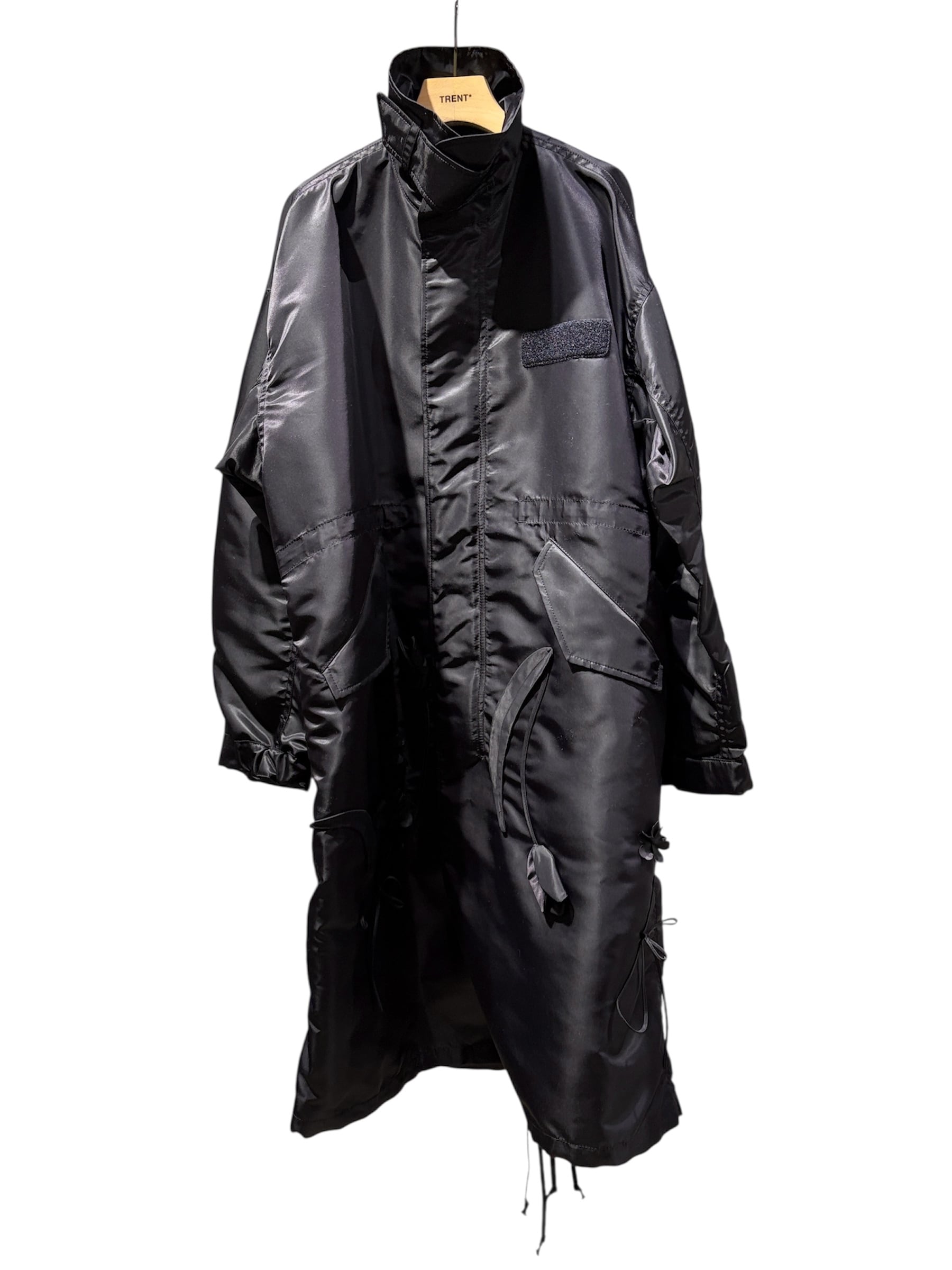 Mame Kurogouchi マメ クロゴウチ / Nylon Twill 3D Embroidery Mods Coat - black