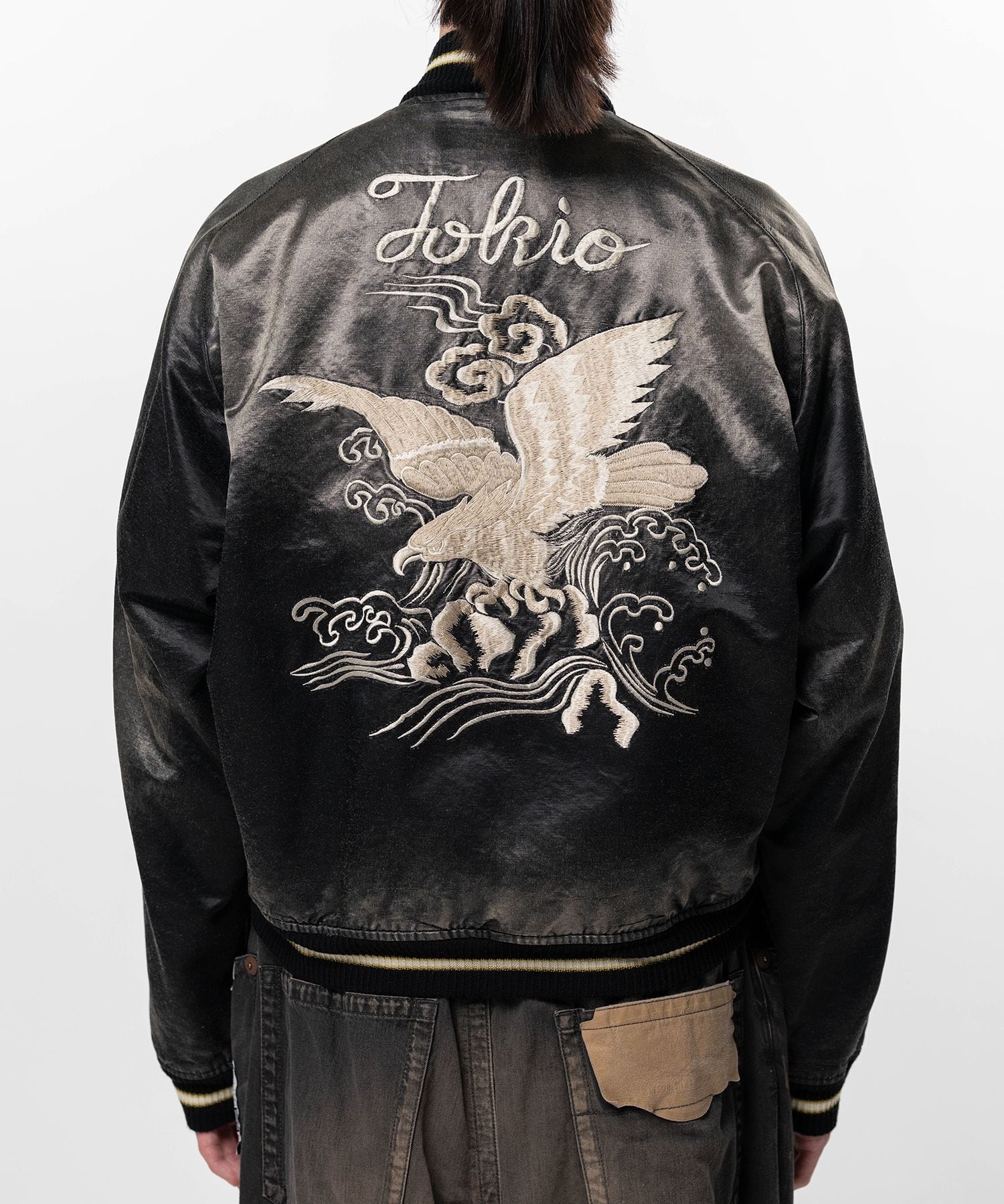横須賀発祥のスカジャンをインスピレーション源にデザインされた襟付きスーベニアジャケット。