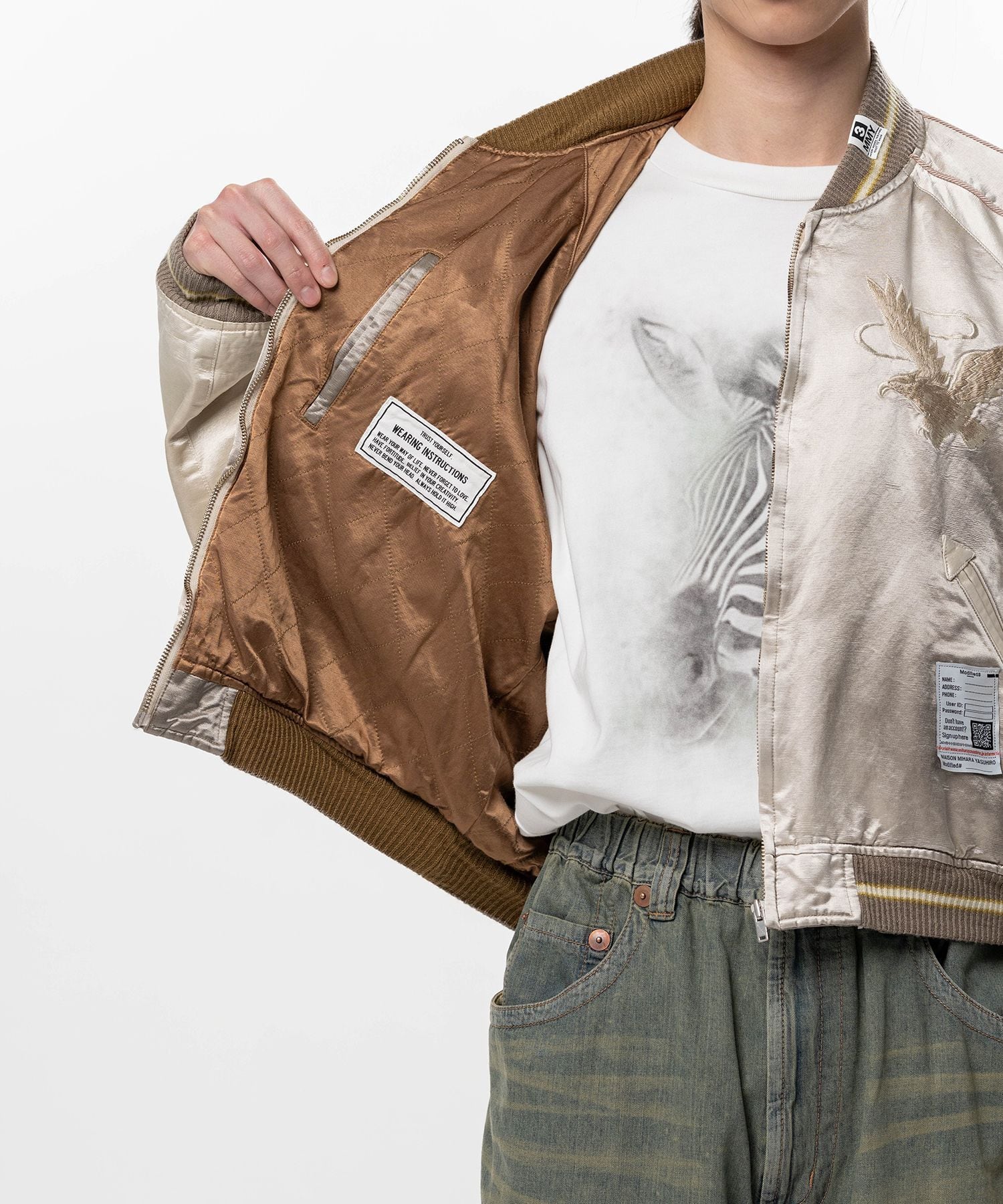 横須賀発祥のスカジャンをインスピレーション源にデザインされた襟付きスーベニアジャケット。
