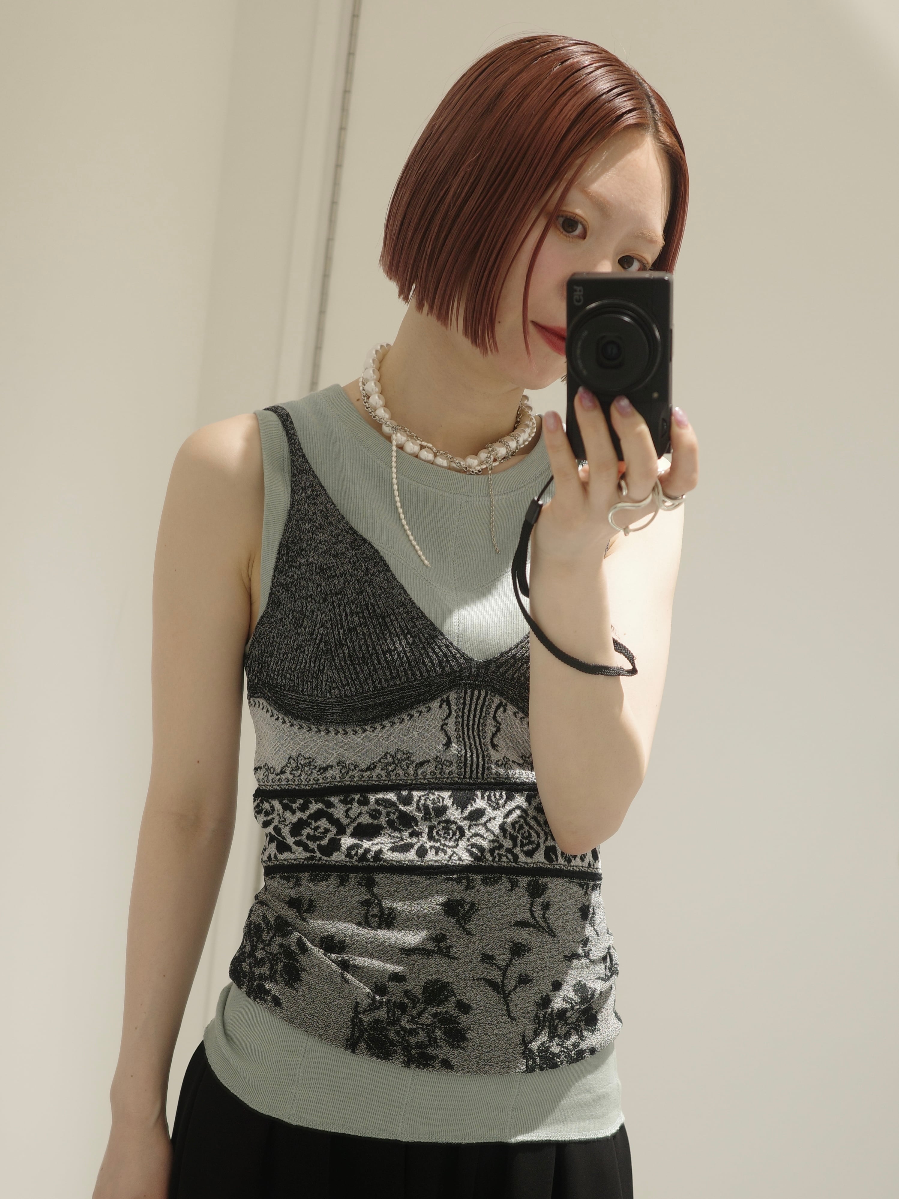 Mame Kurogouchi マメ クロゴウチ / Floral Jacquard Knit Camisole Top