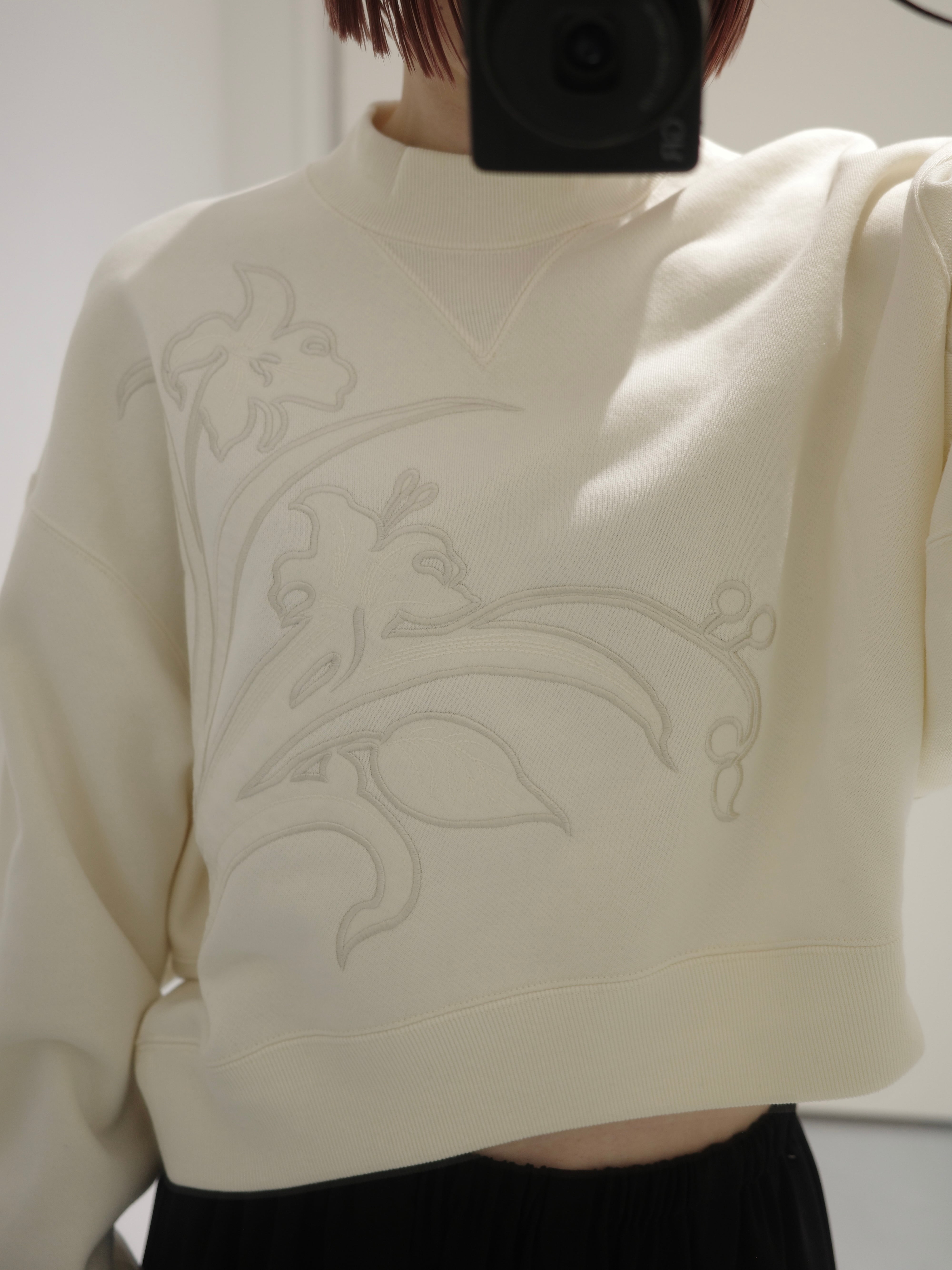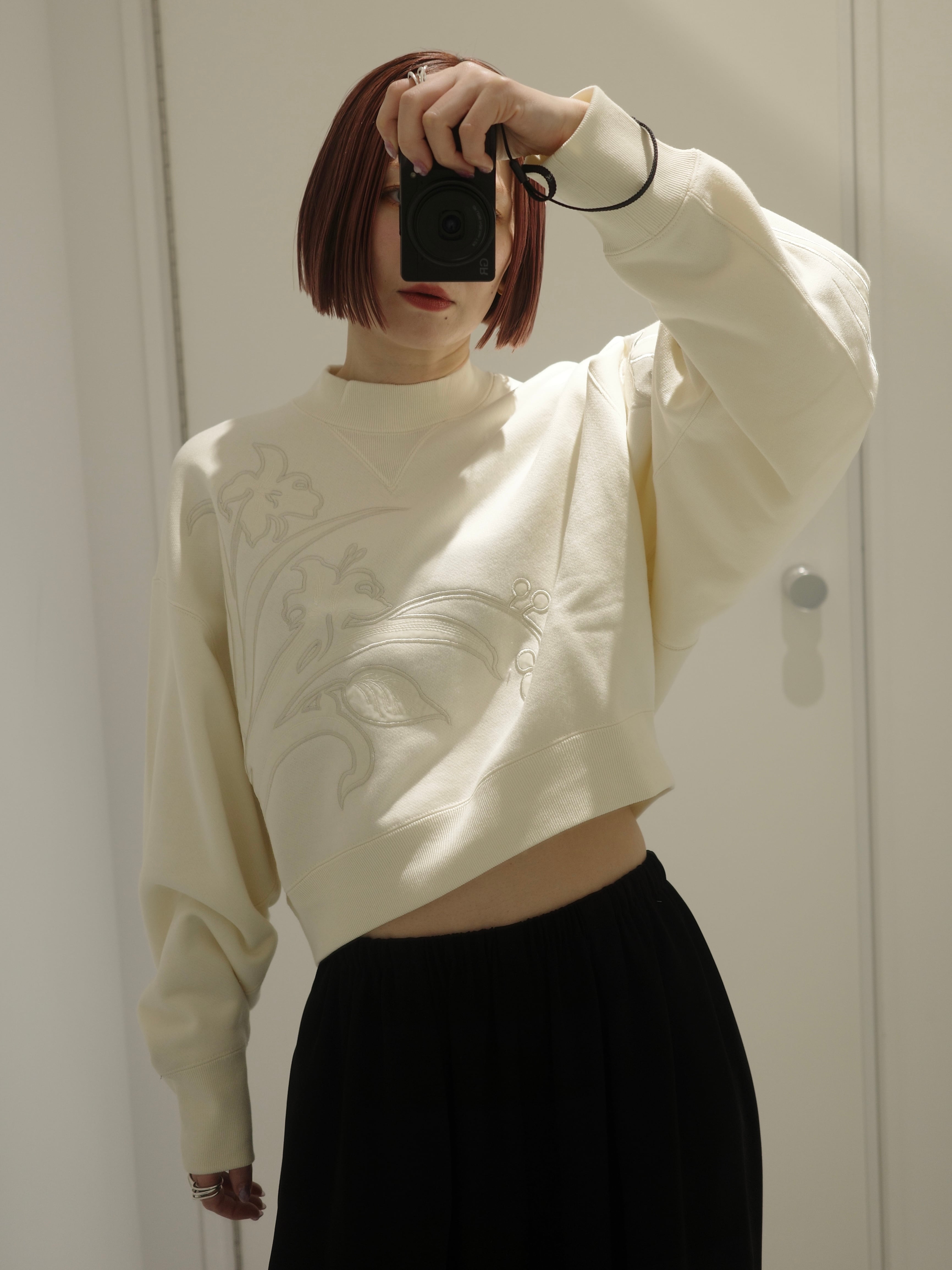 Mame Kurogouchi マメ クロゴウチ / Floral Embroidery Short Sweat Top