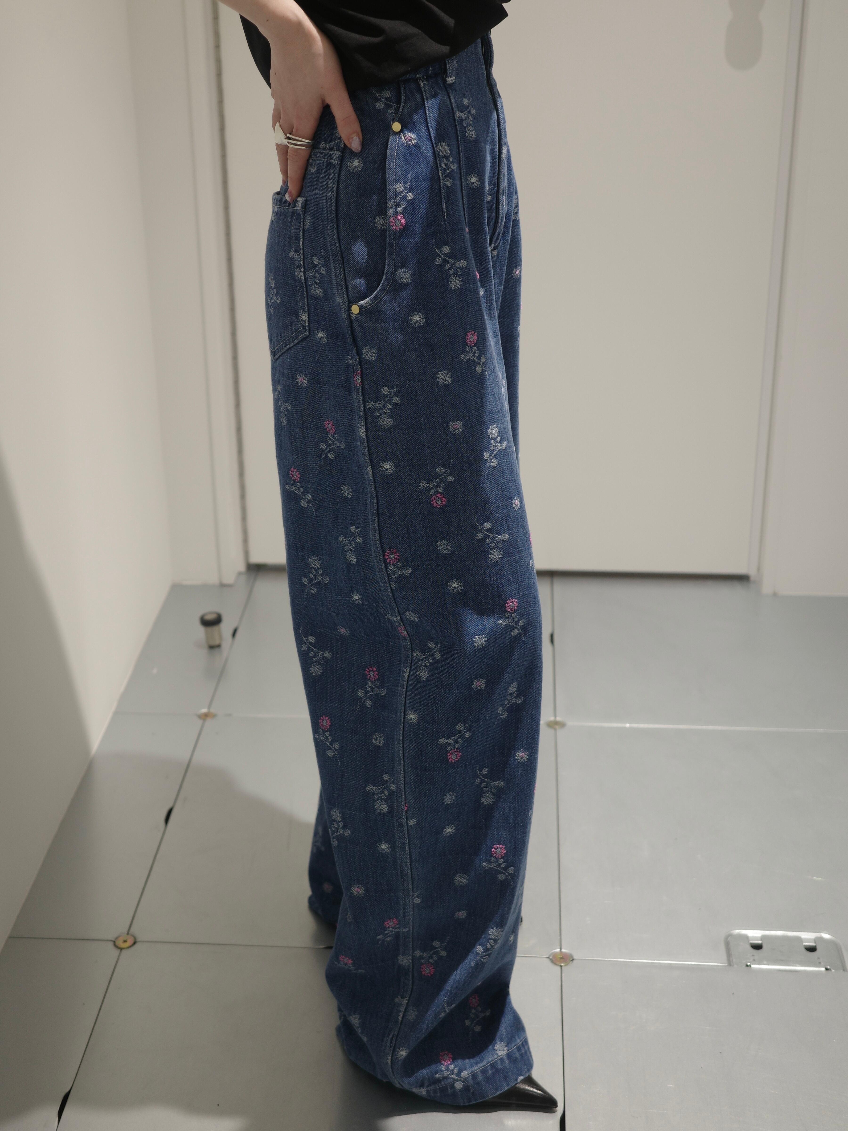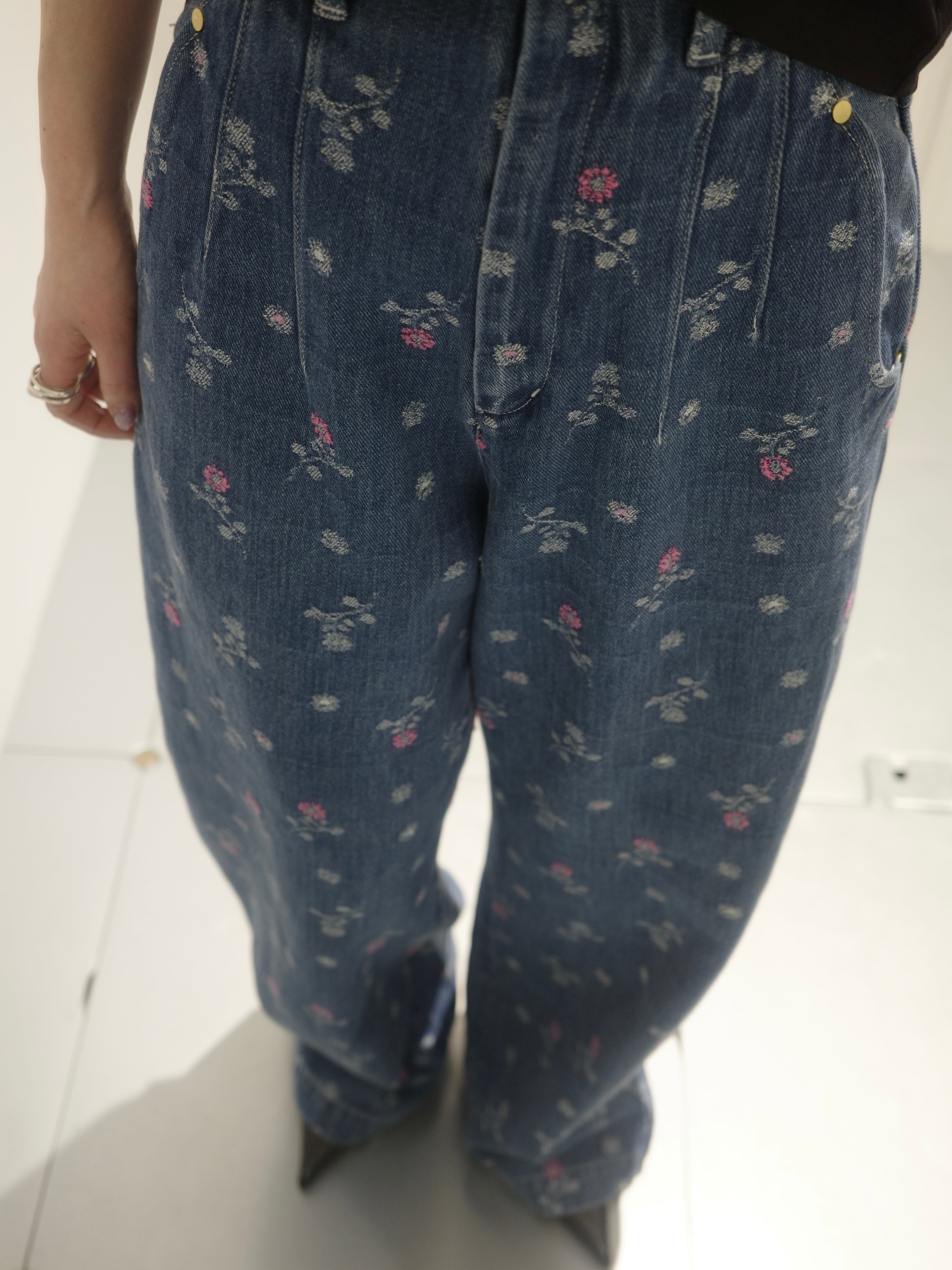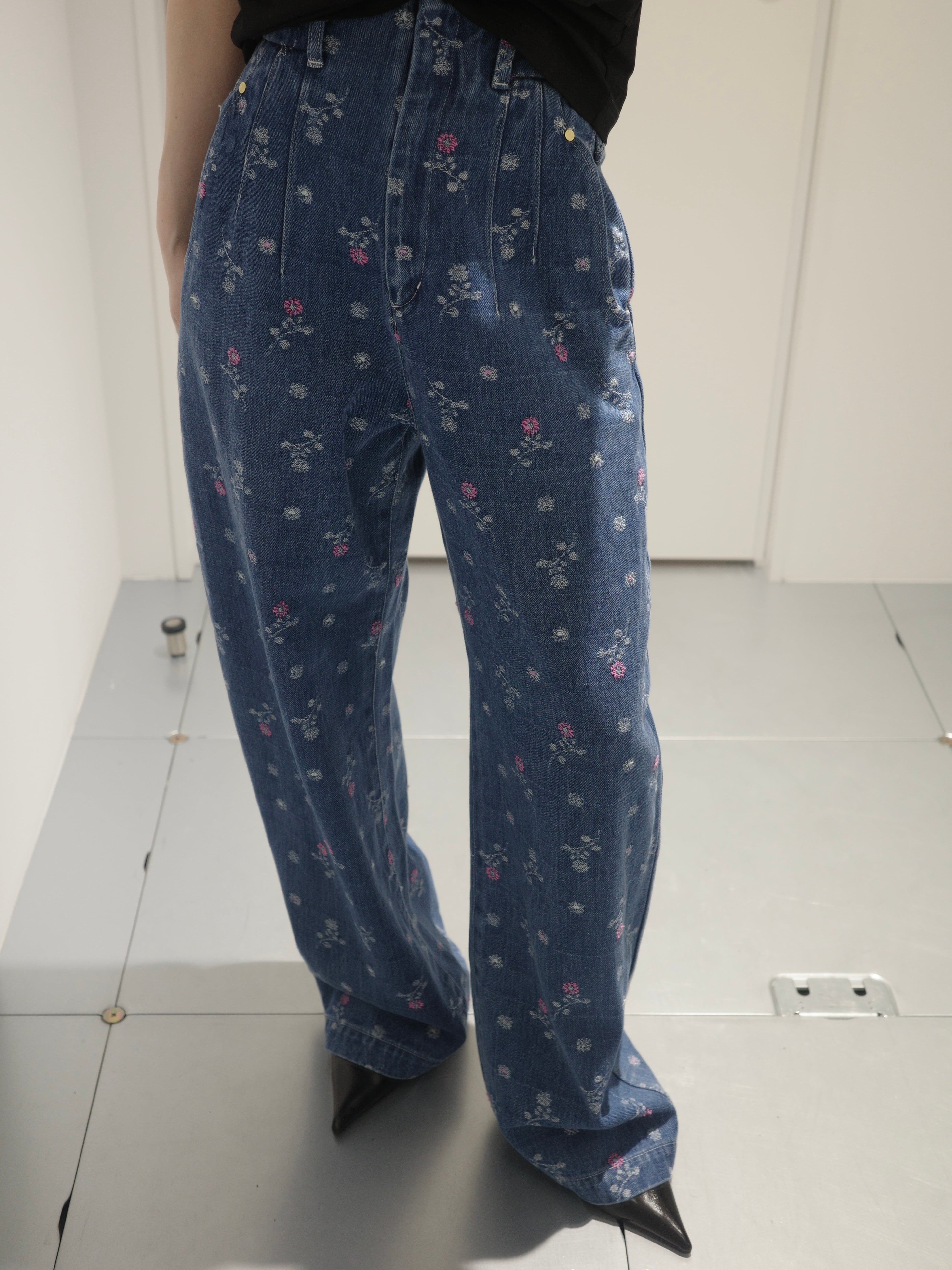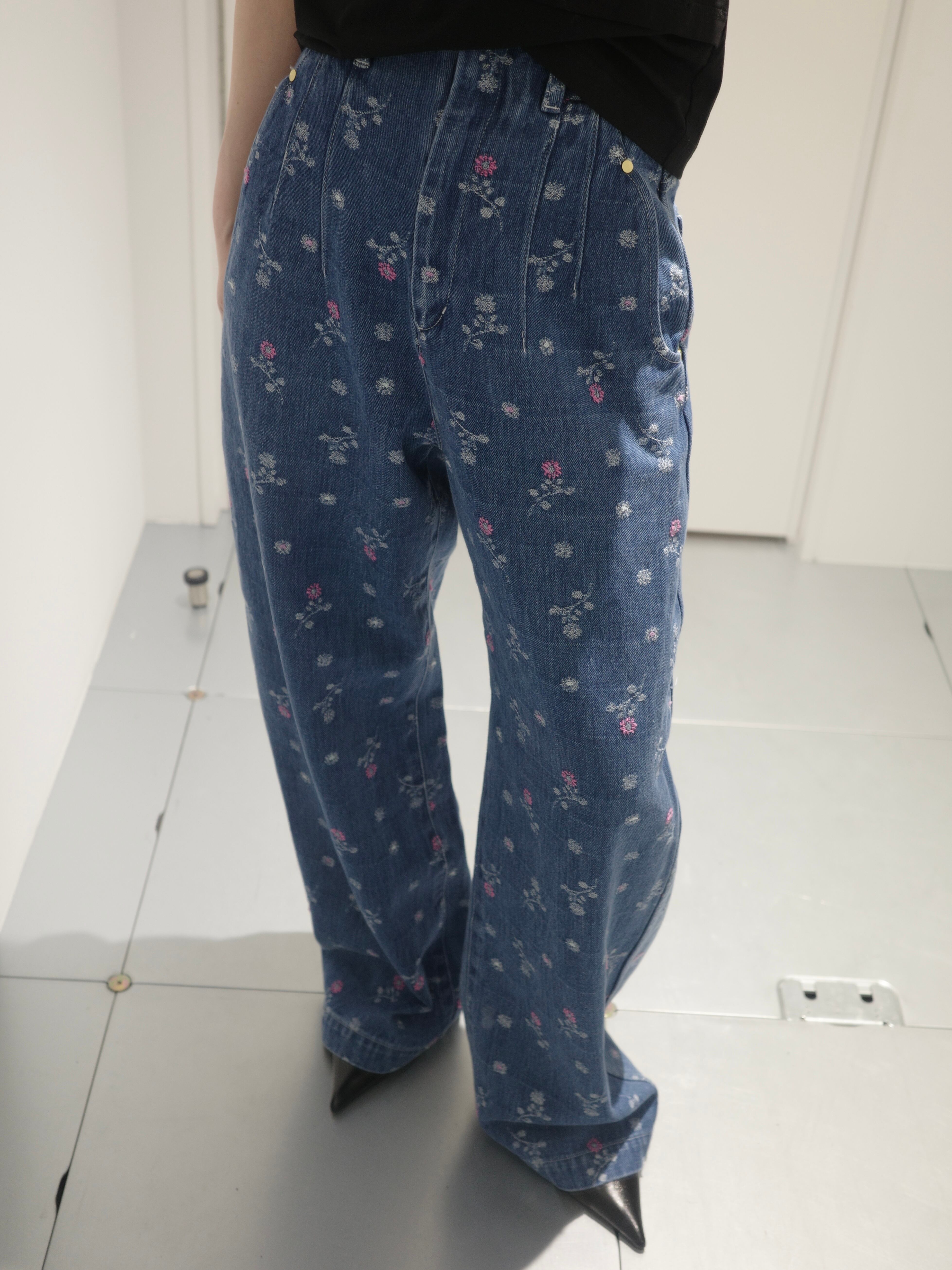 Mame Kurogouchi マメ クロゴウチ / Floral Jacquard High Waisted Denim Trousers
