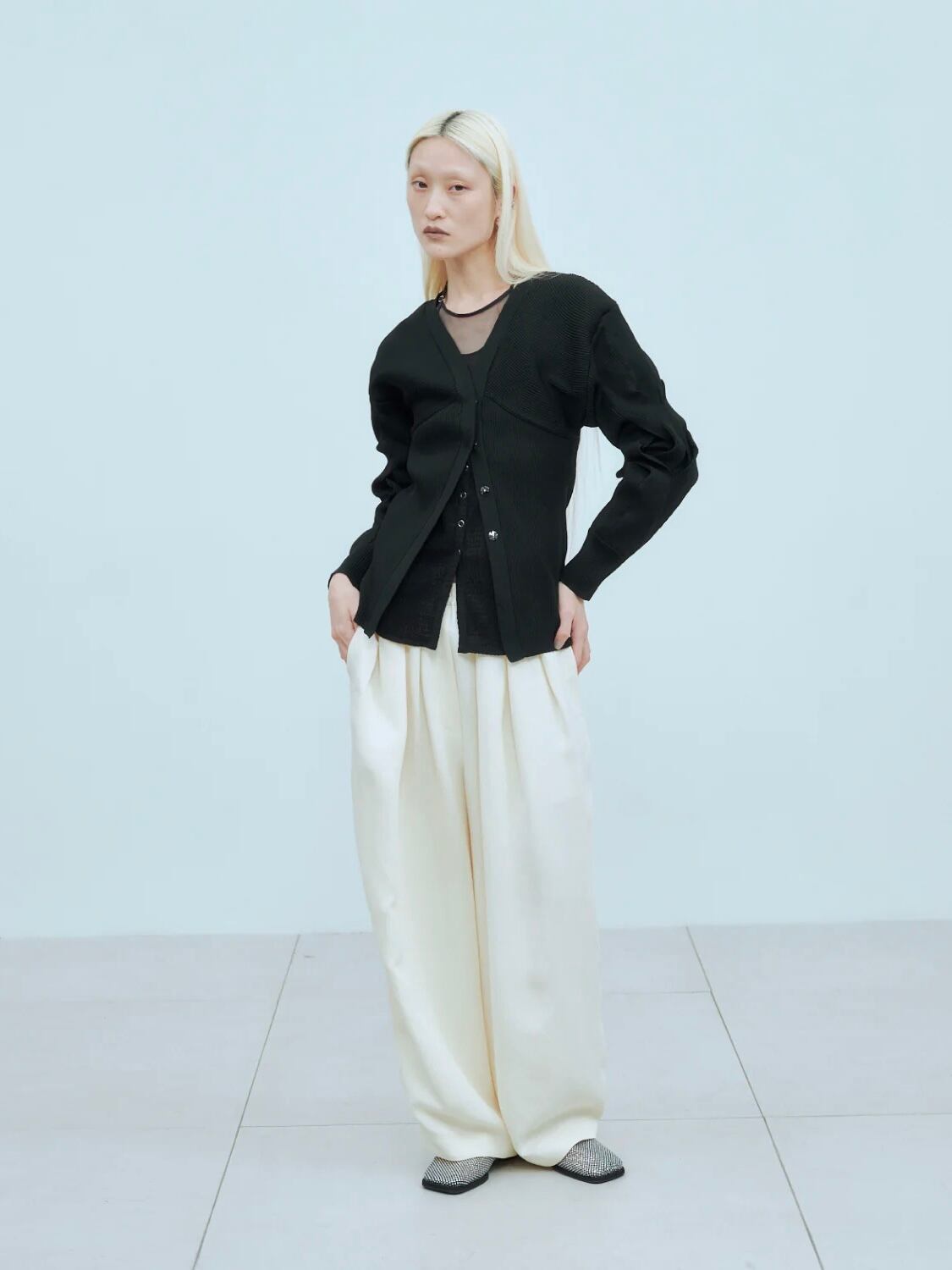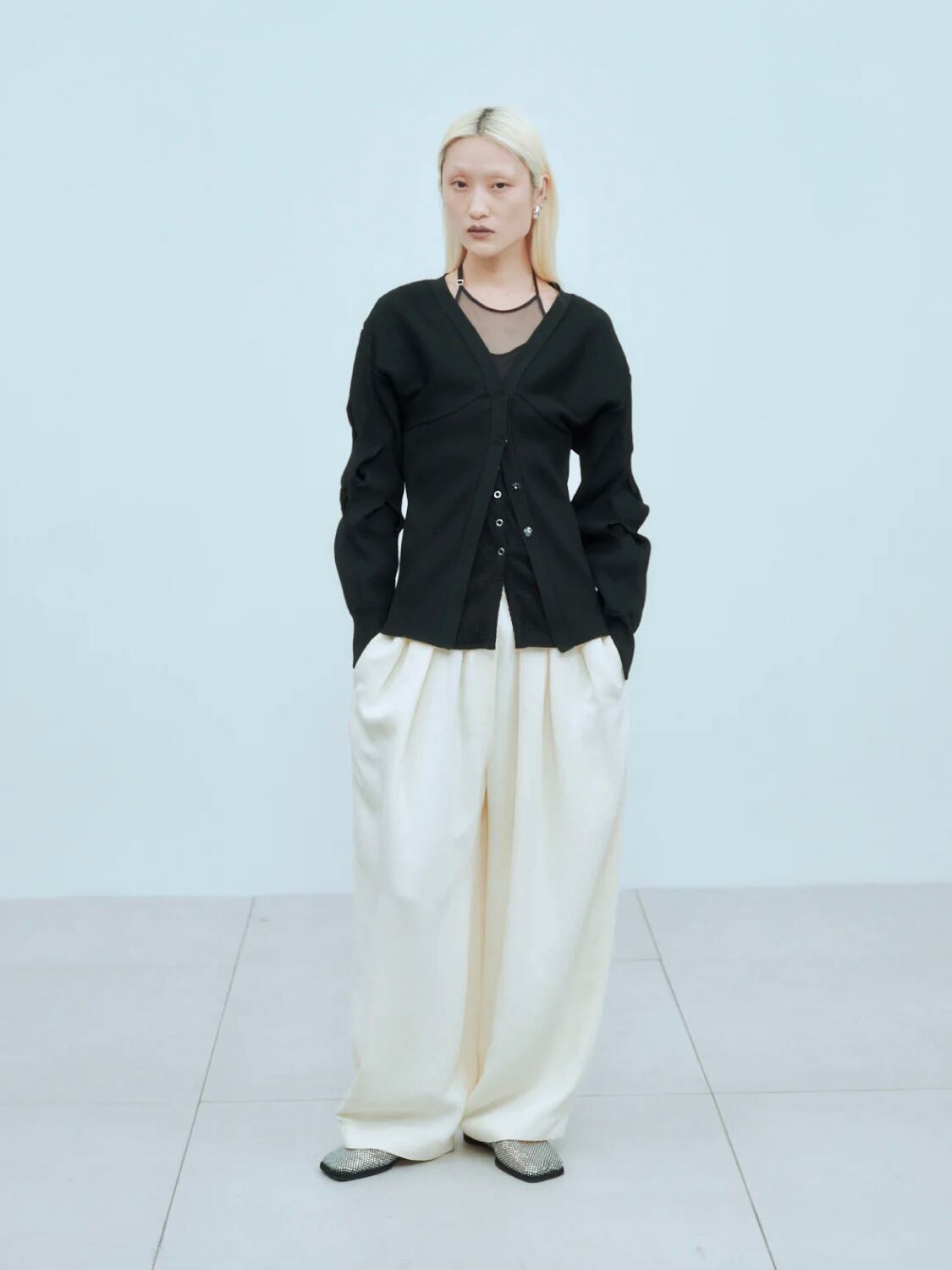後ろに接ぎを入れた丸みのあるシルエットが特徴のパンツ。