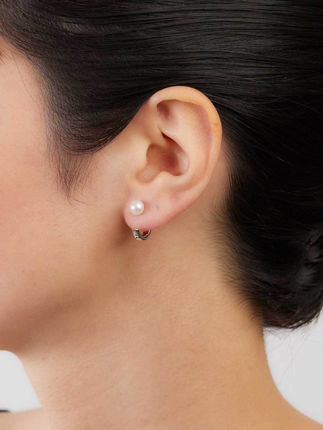 大人気のDisrupted 14 ピアスにパールをアレンジした、エッジさとエレガンスさの絶妙なバランスが取れたフリーダ パール ピアス。パール部分は、お手持ちのキャッチでお留めいただくと、一粒パールのピアスとしてもご着用頂けます。