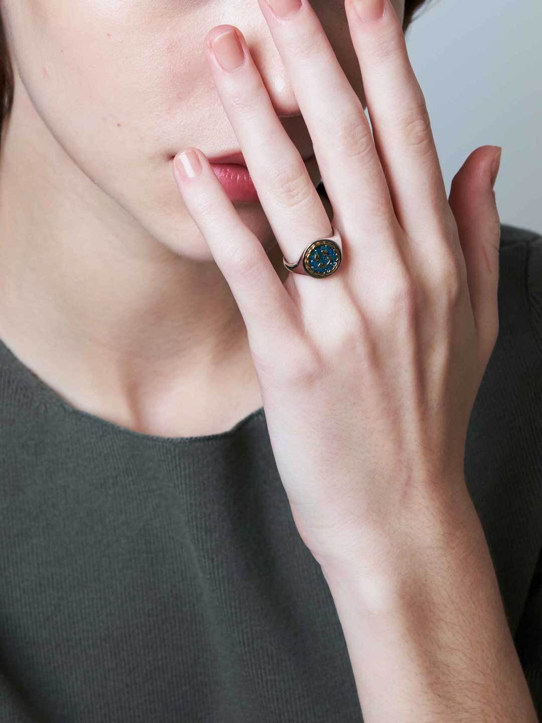 Maria Blackの代表的なシグネットリング。シンプルなデザインには、別売りのコインパーツをはめ込みお好きなスタイリングを完成させてください。コインパーツを変えれば、印象の違うリングに仕上がります。