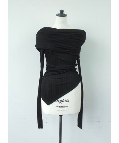 MUKASA ムカサ / OFF SHOULDER RANDOM RIB TOP