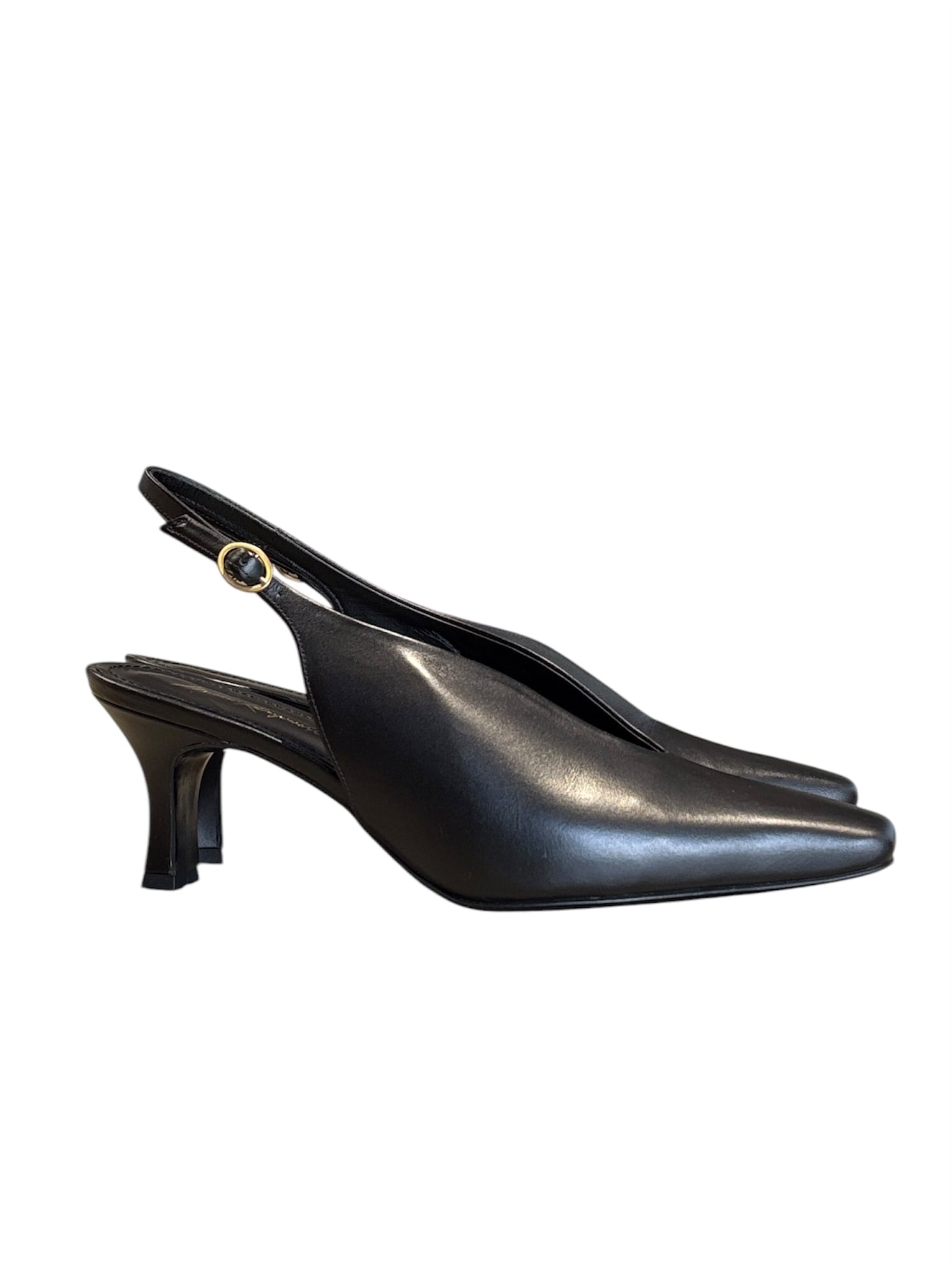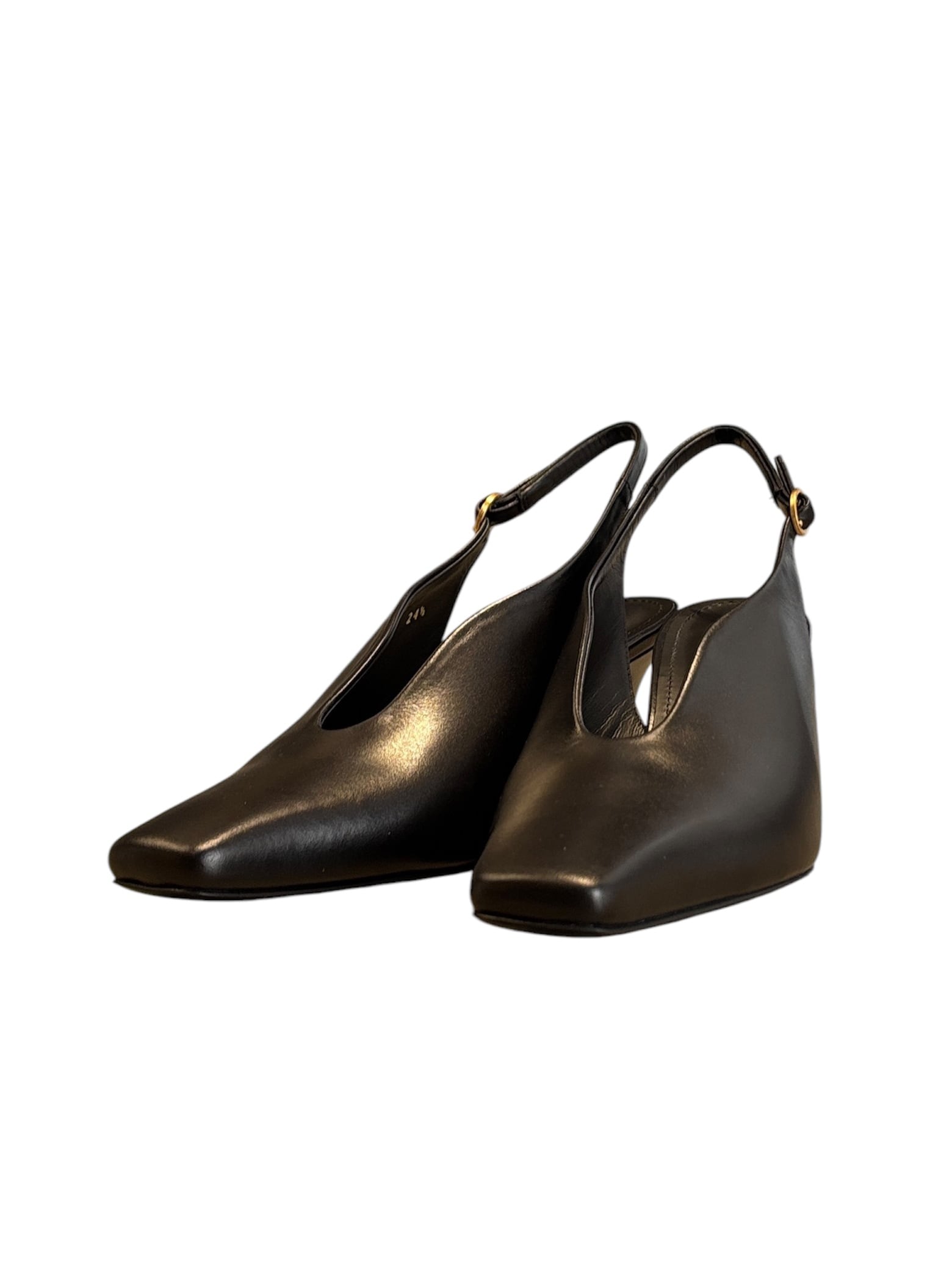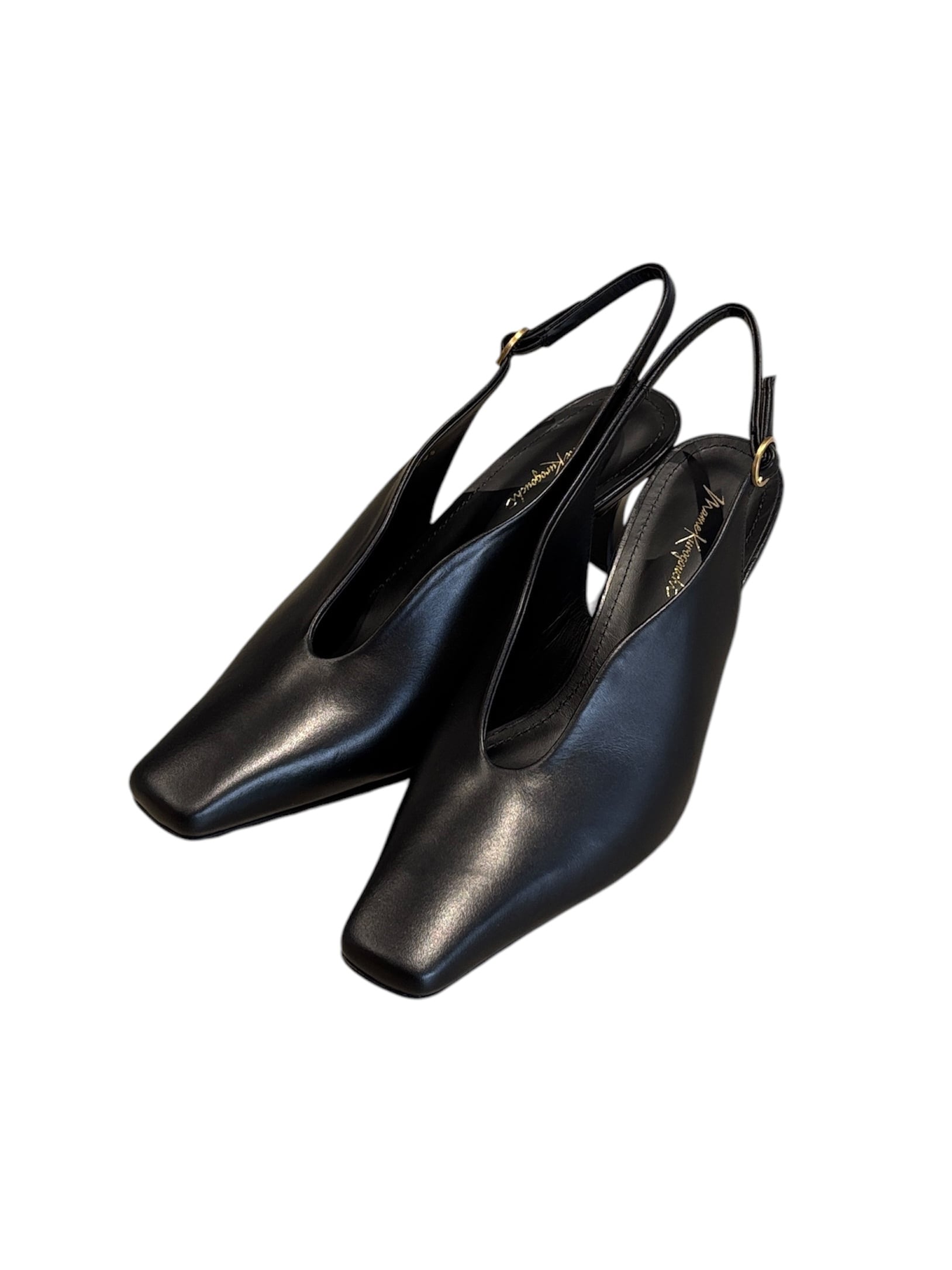 Mame Kurogouchi マメ クロゴウチ / Curved Line Sling Back Heels - black