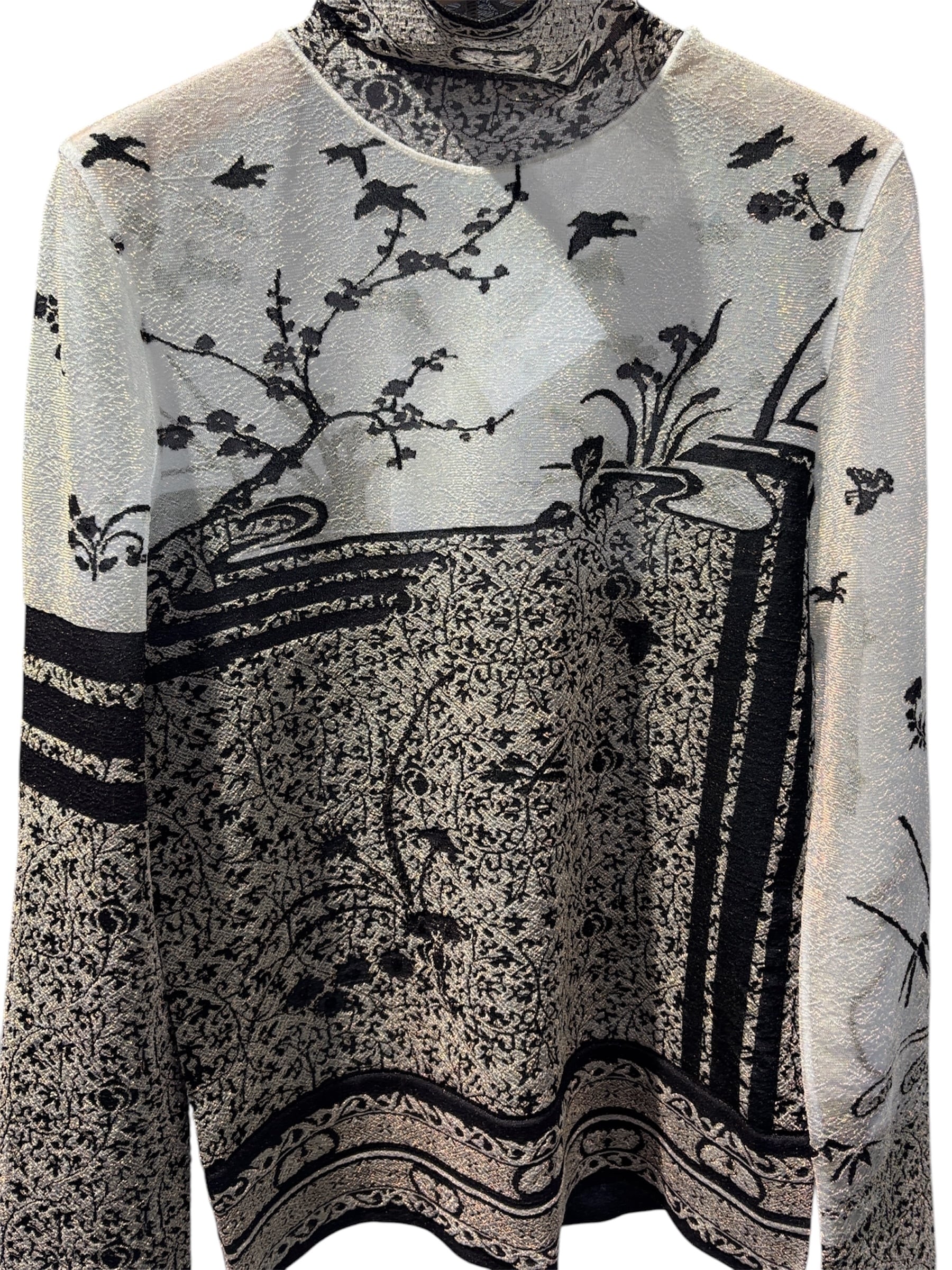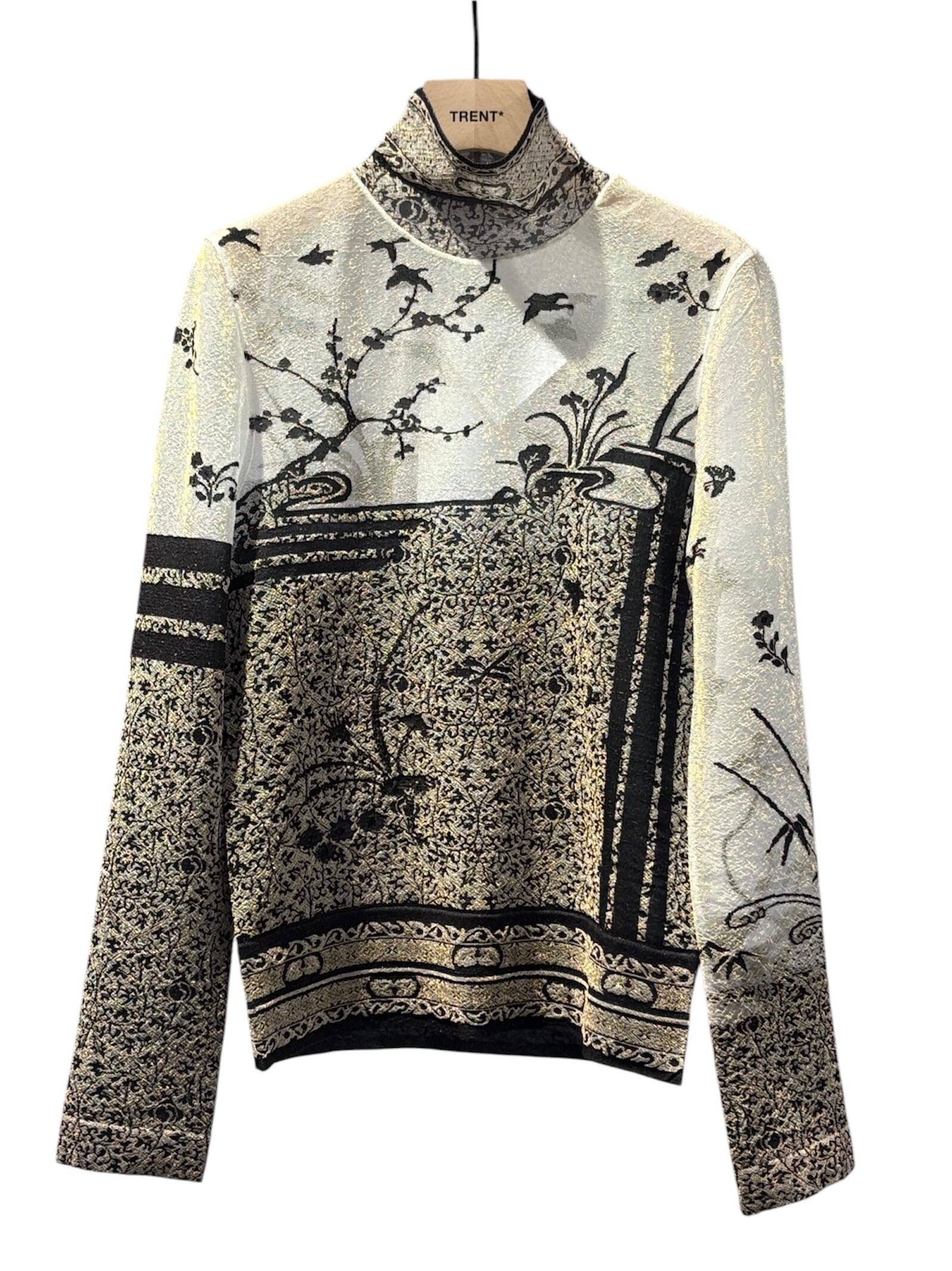 Mame Kurogouchi マメ クロゴウチ / Nature Pattern Sheer Knitted High Neck Top