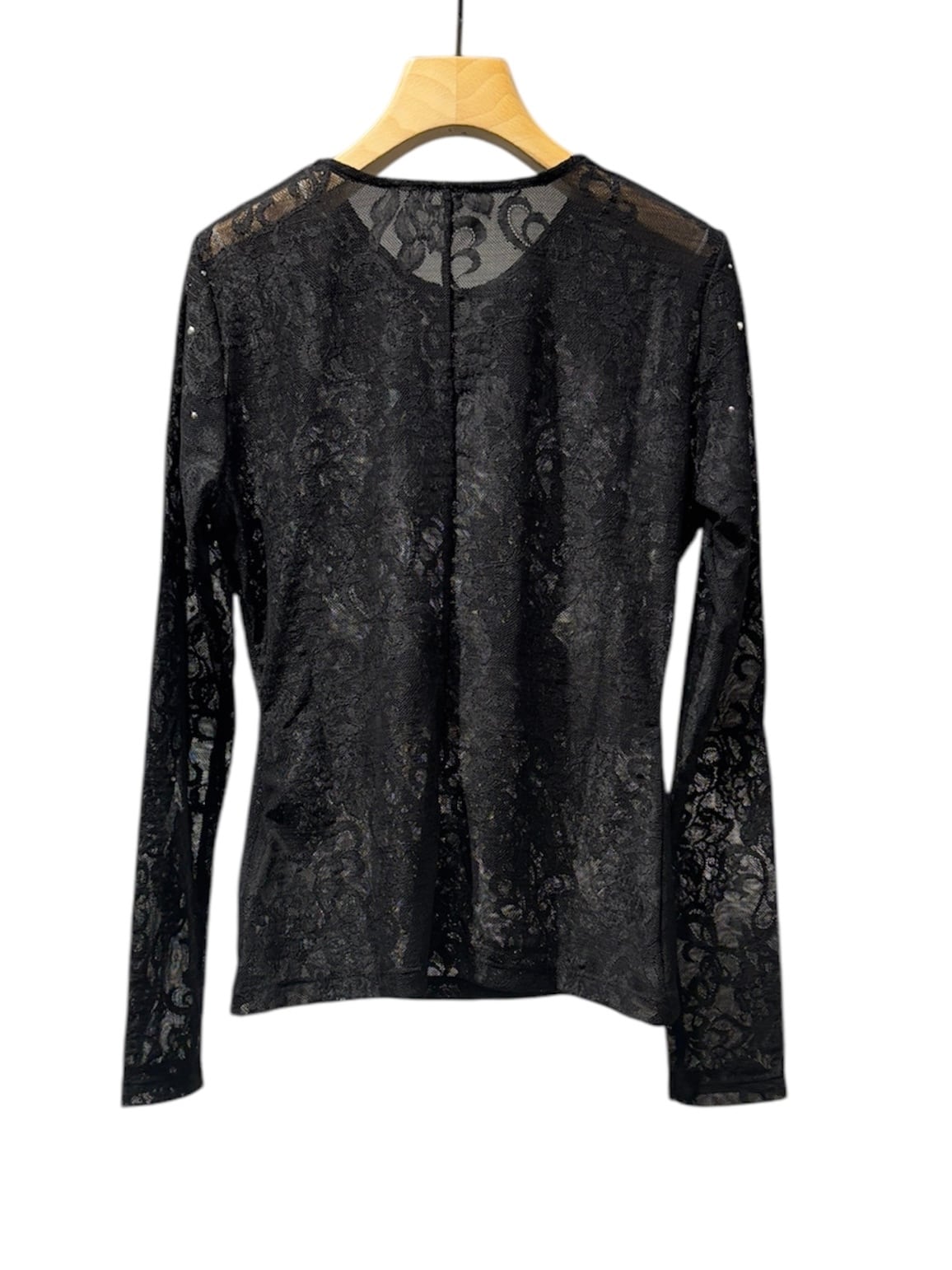 前見頃の襟ぐりと袖にラインストーンが散りばめられてるので